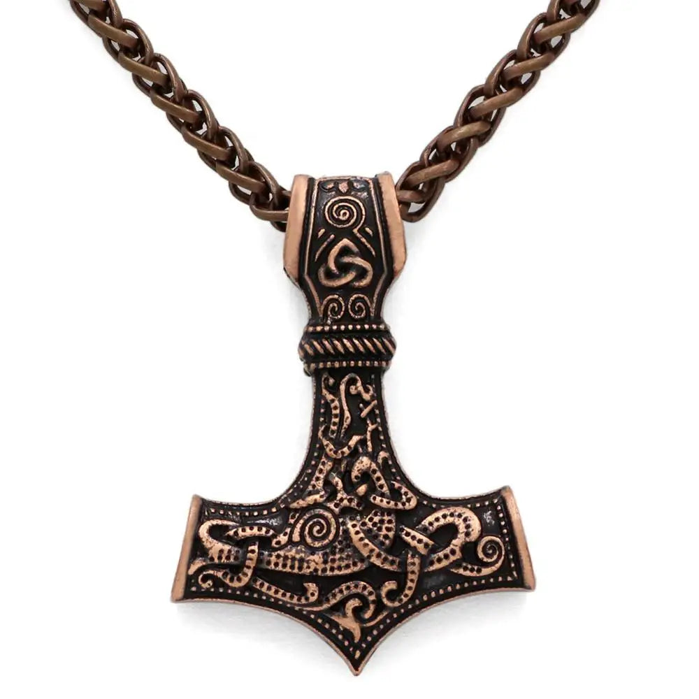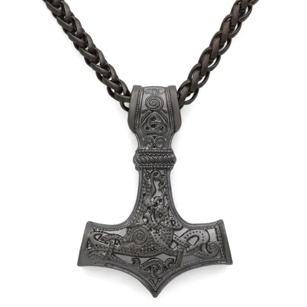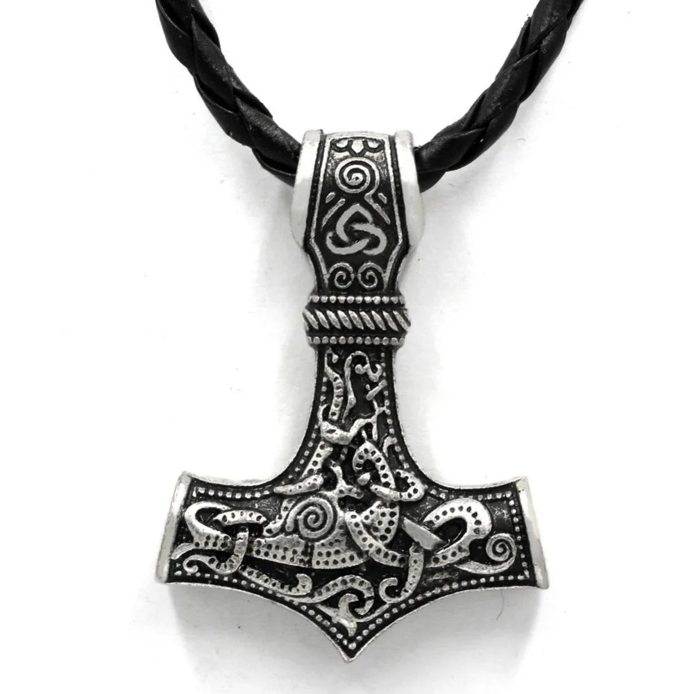 Norse Viking Amulet Necklace – Thor's hammer pendant with Viking runes, perfect for women.