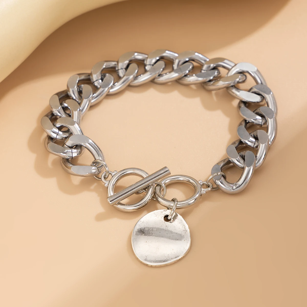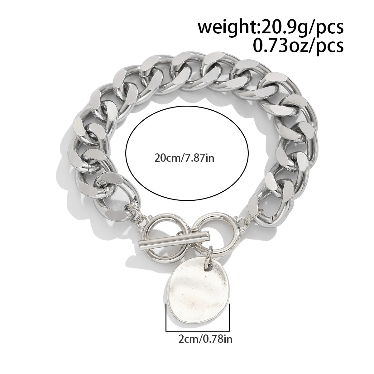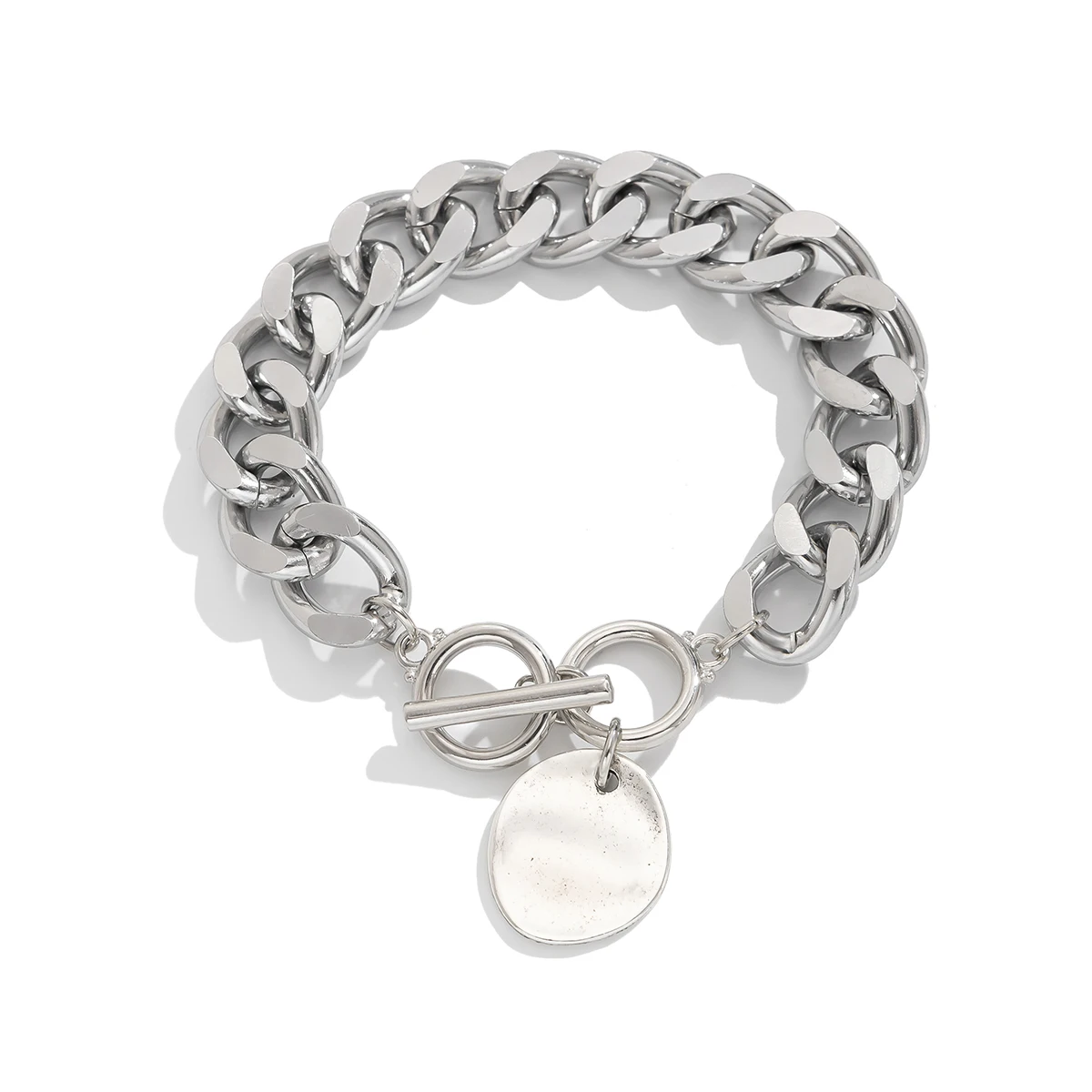 Punk Silver Chain Bracelet with Coin Pendant for Women