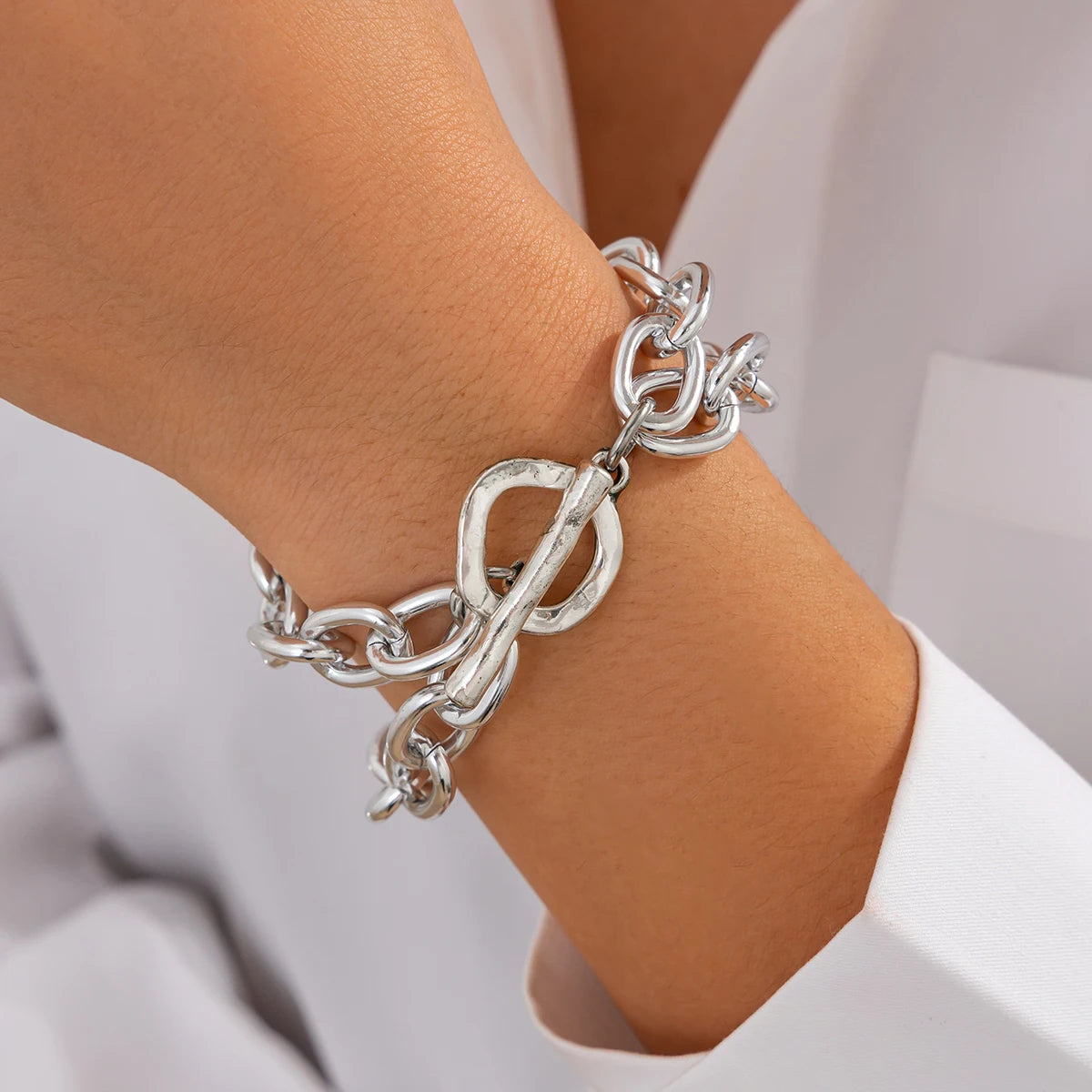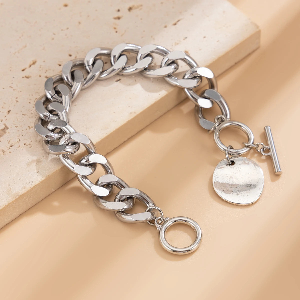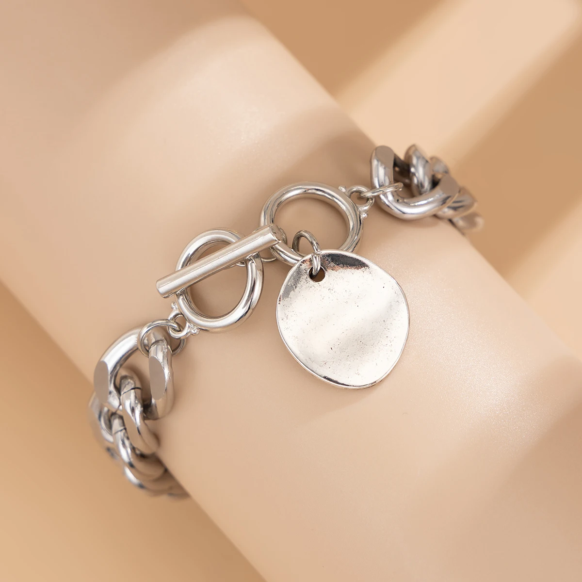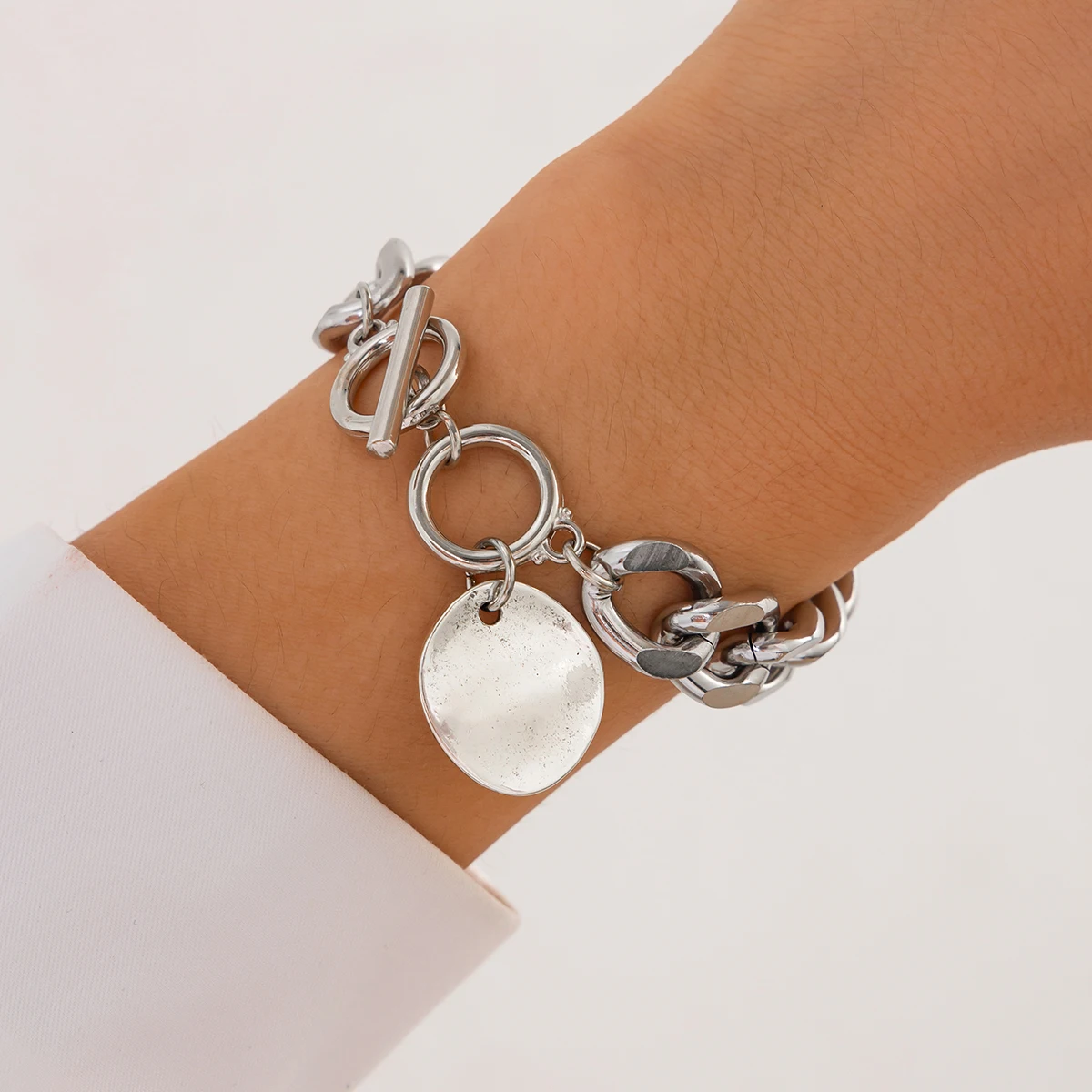 Punk Silver Chain Bracelet with Coin Pendant for Women