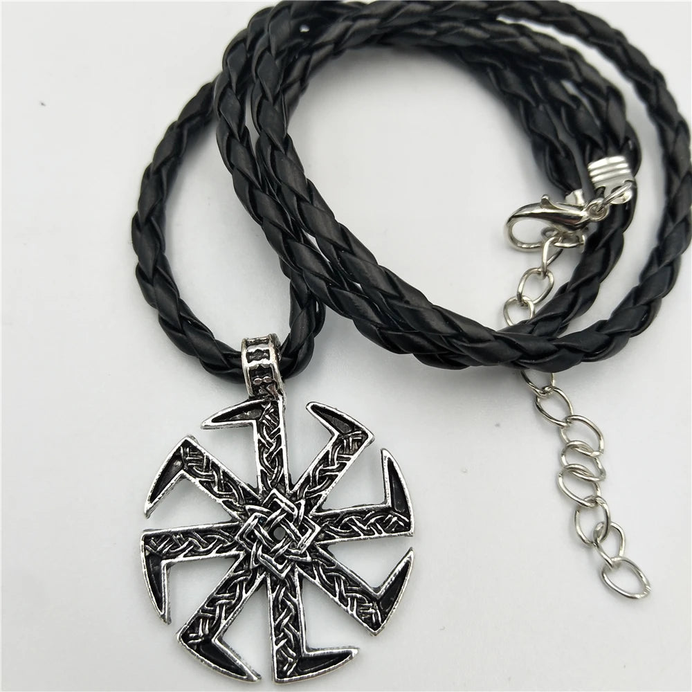 Slavic Kolovrat Amulet Pendant – Pagan Sunflower Talisman Necklace, Norse Jewelry, and Slavic Symbol. Free shipping.