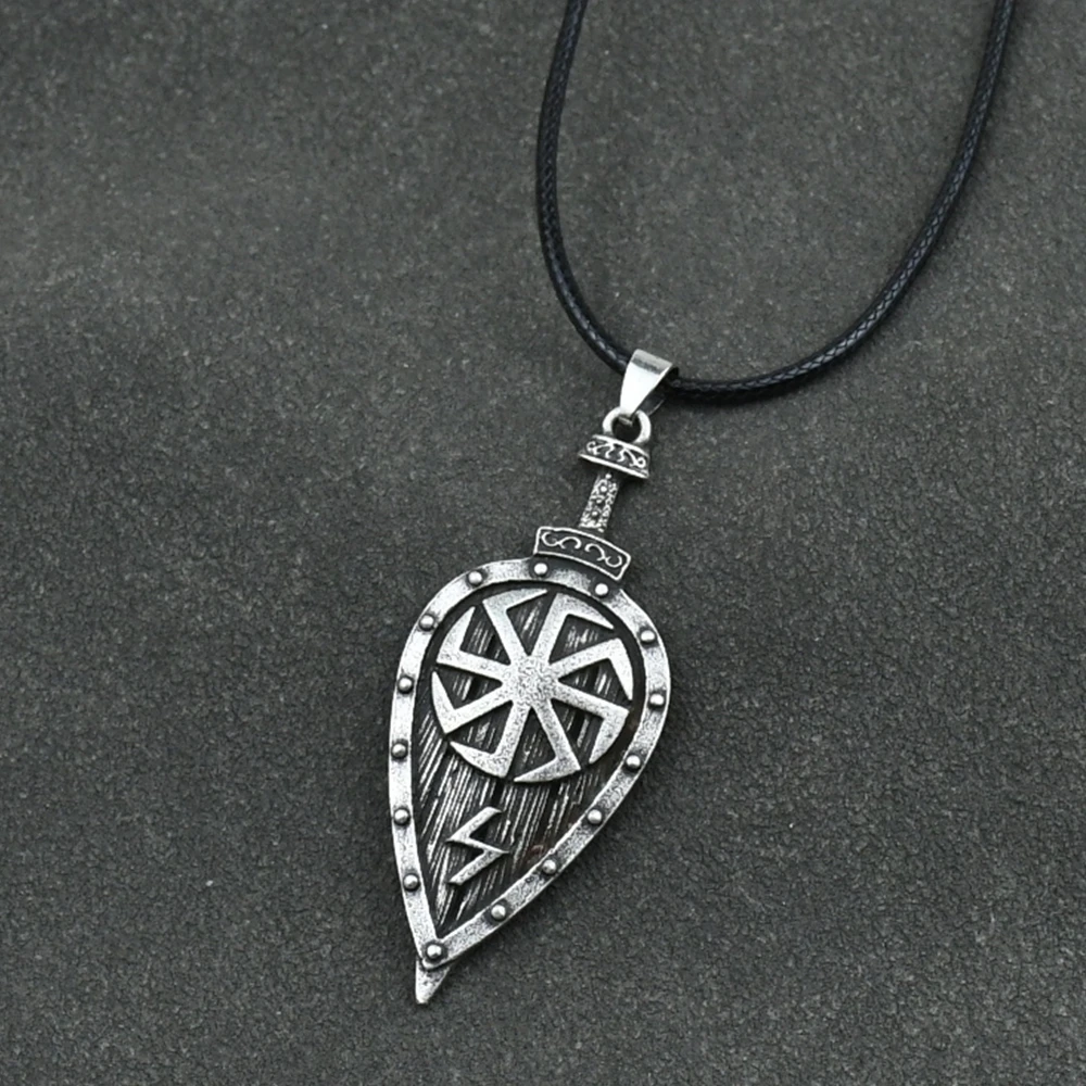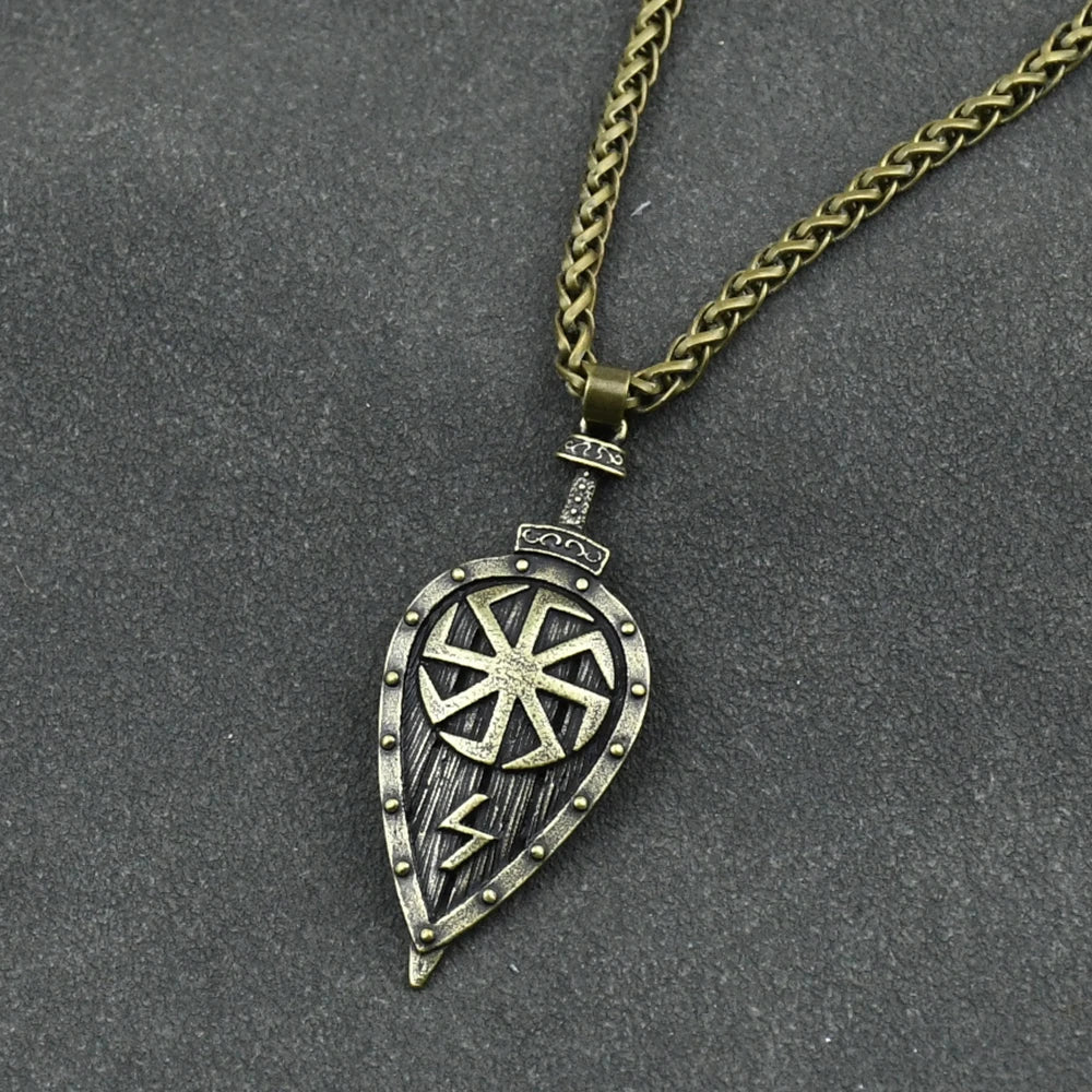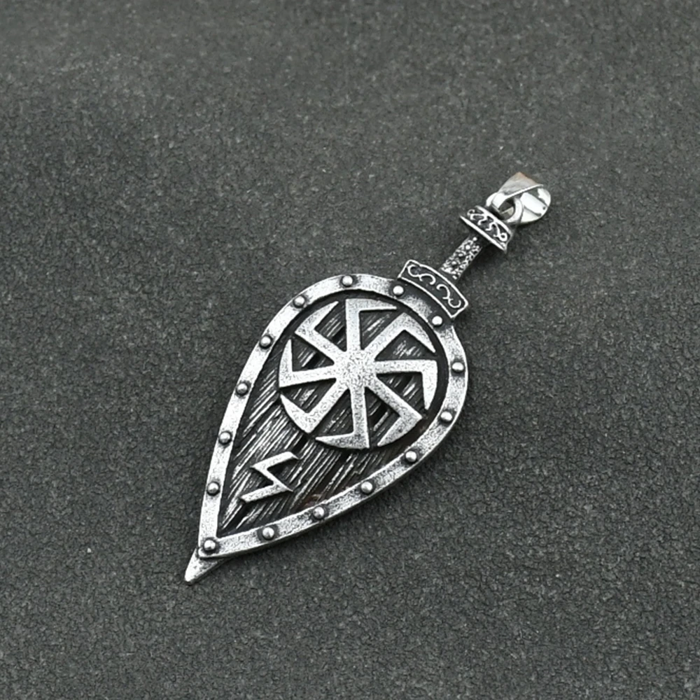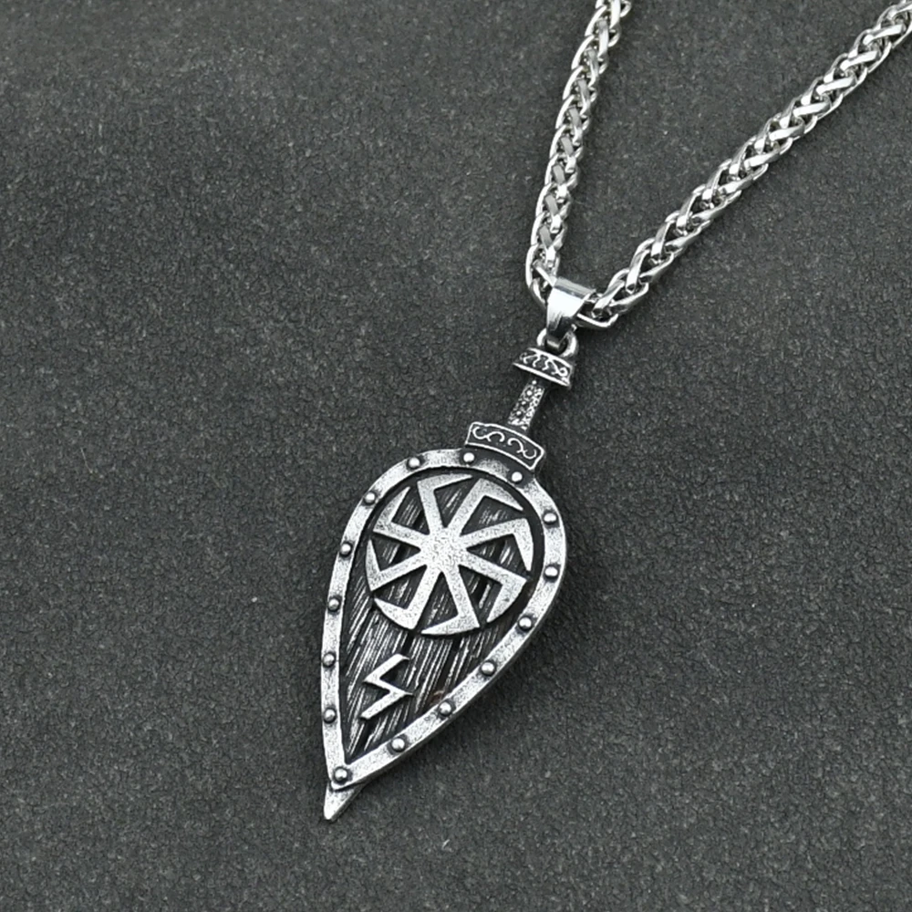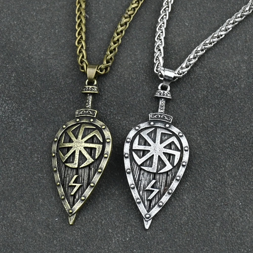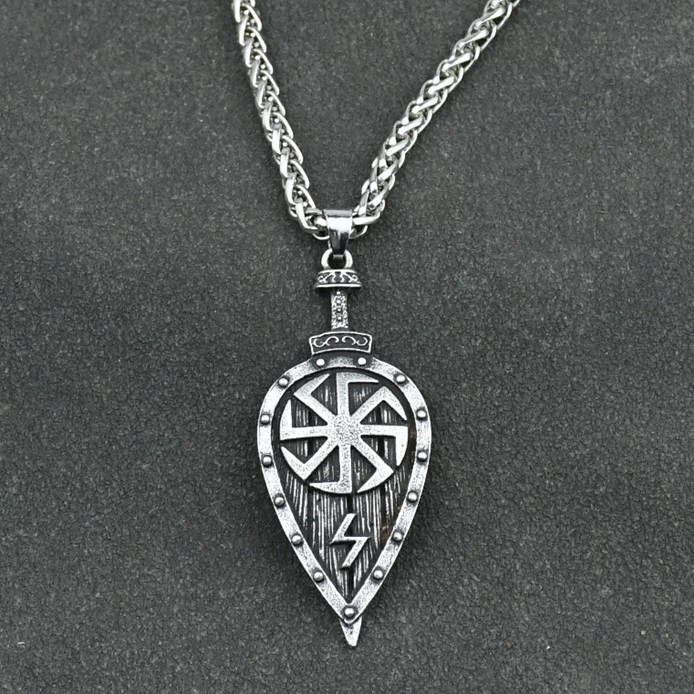 Slavic Kolovrat Pendant Necklace – Viking sword and shield amulet for men and women.