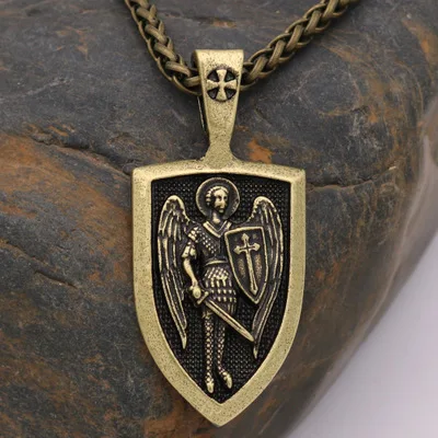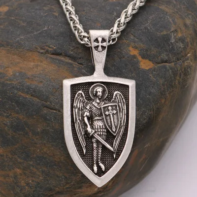 Item Name:DropShipping Angel Shield Necklace Men Viking Warrior Archangel Michael Protection Amulet Russian Orthodox Cross Pendant Jewelry