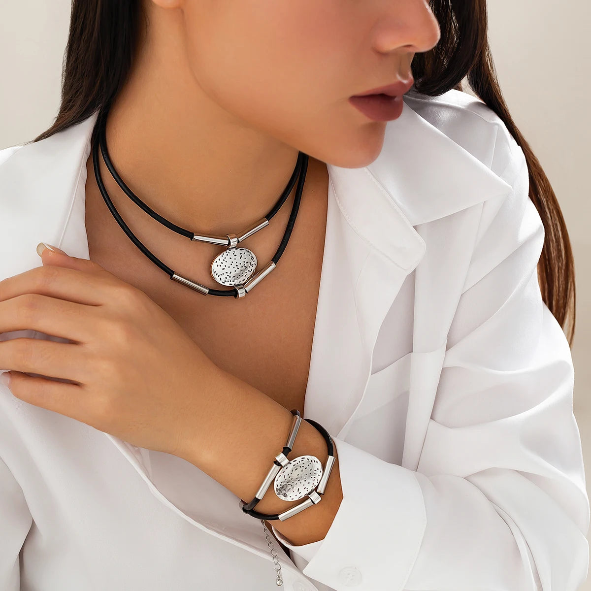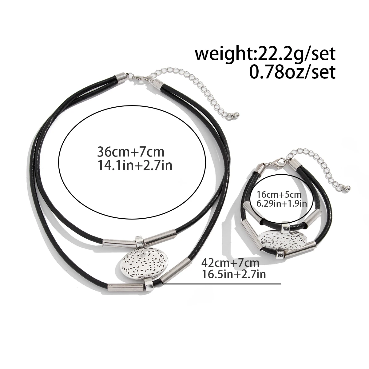 2Pcs Vintage Ethnic Oval Pendant Choker Necklace & Bracelet Set