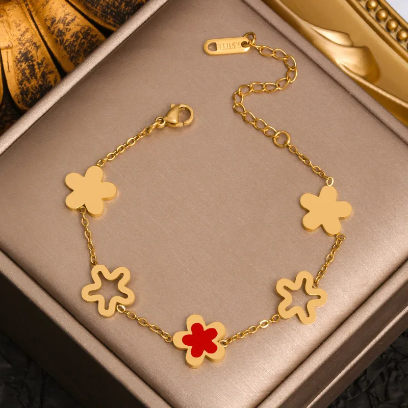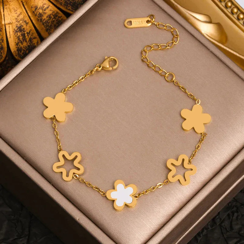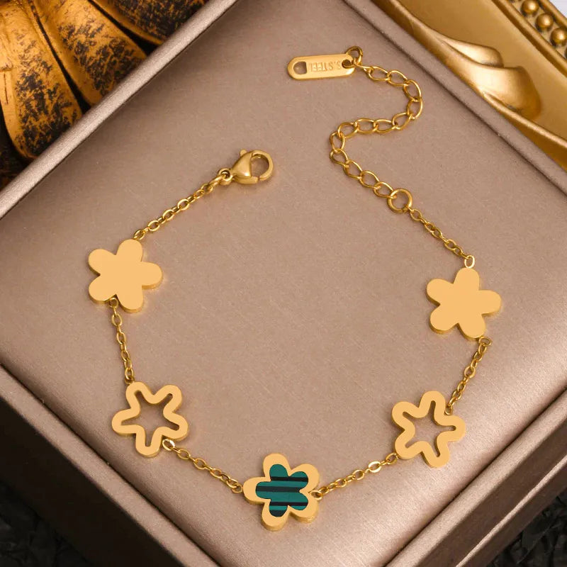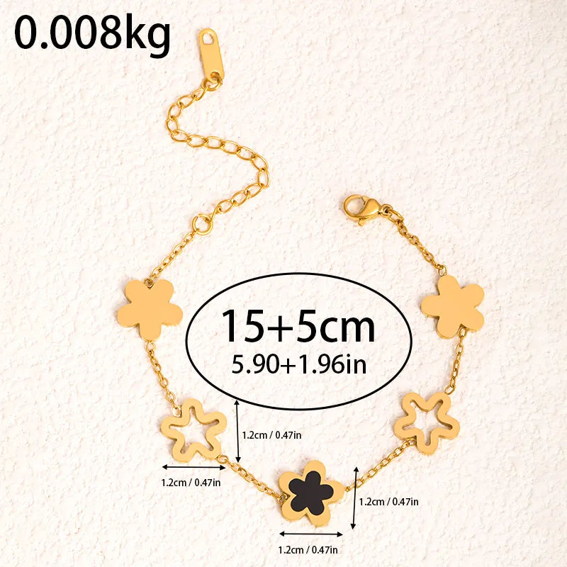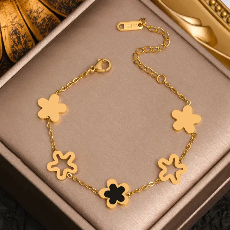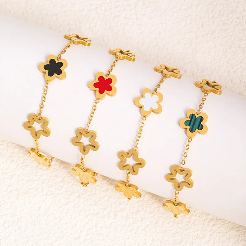 316L Stainless Steel Hollow Five-Leaf Flower Bracelet for Women