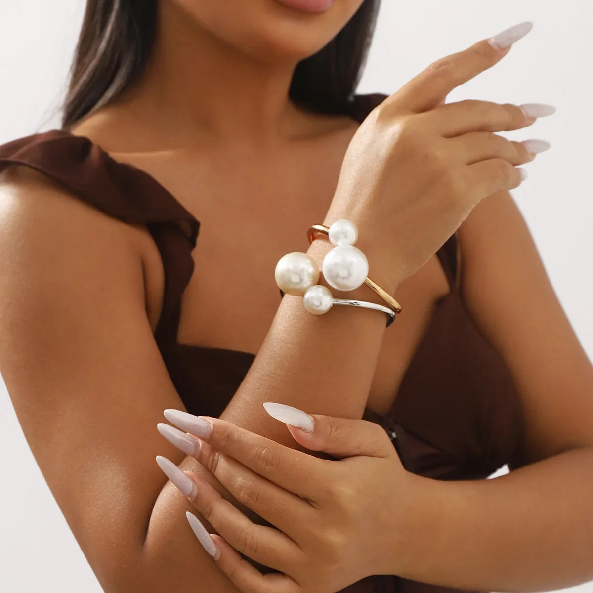 "Cross-Border Pearl Spring Opening Bracelet, Fashionable Sweet & Cool Style"