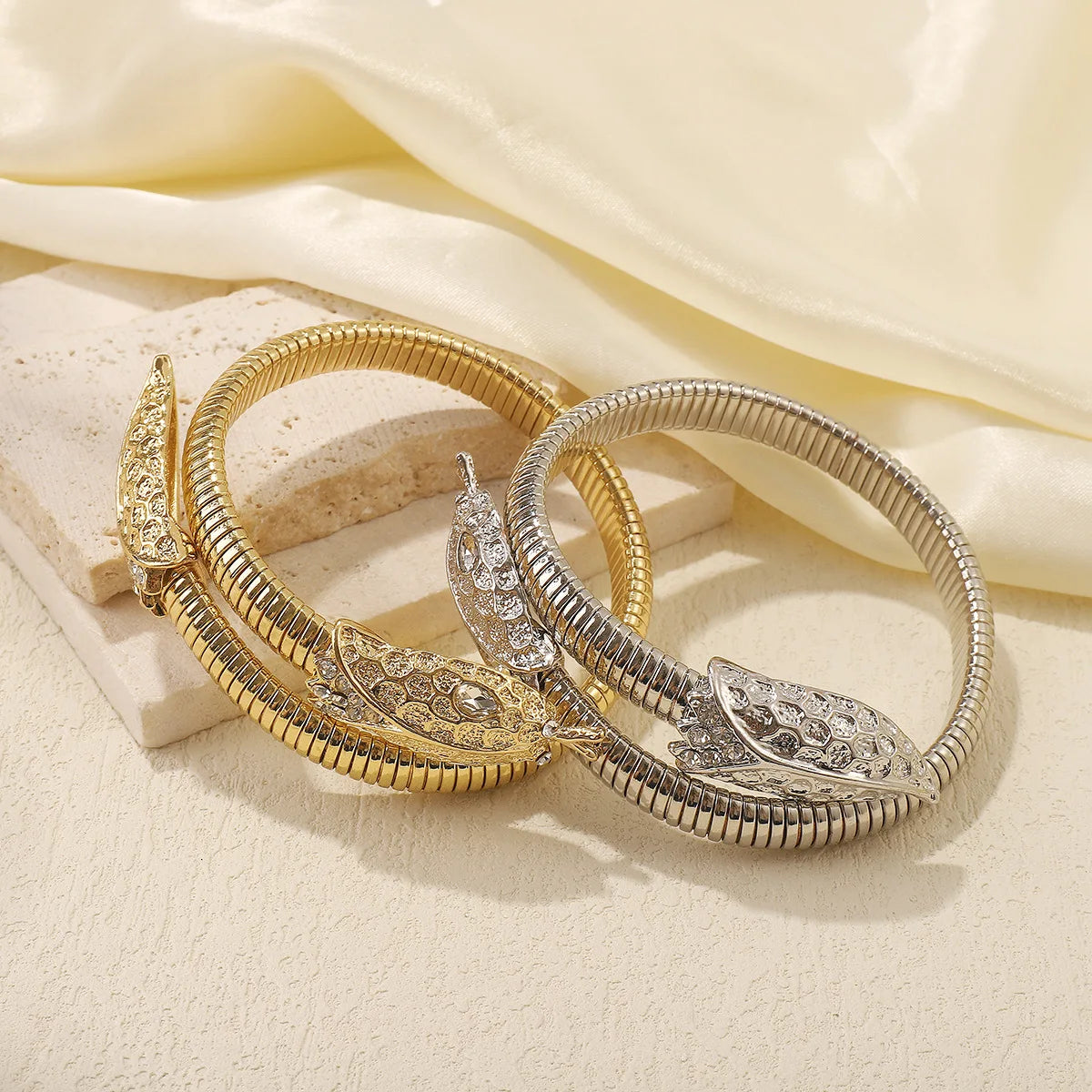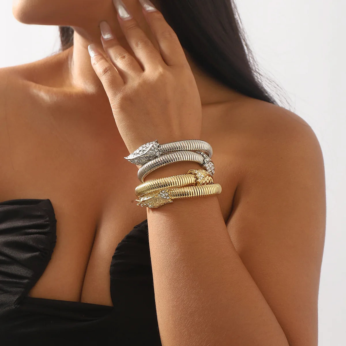 "European-American Diamond Snake Winding Bracelet, Punk Hip-Hop Style"