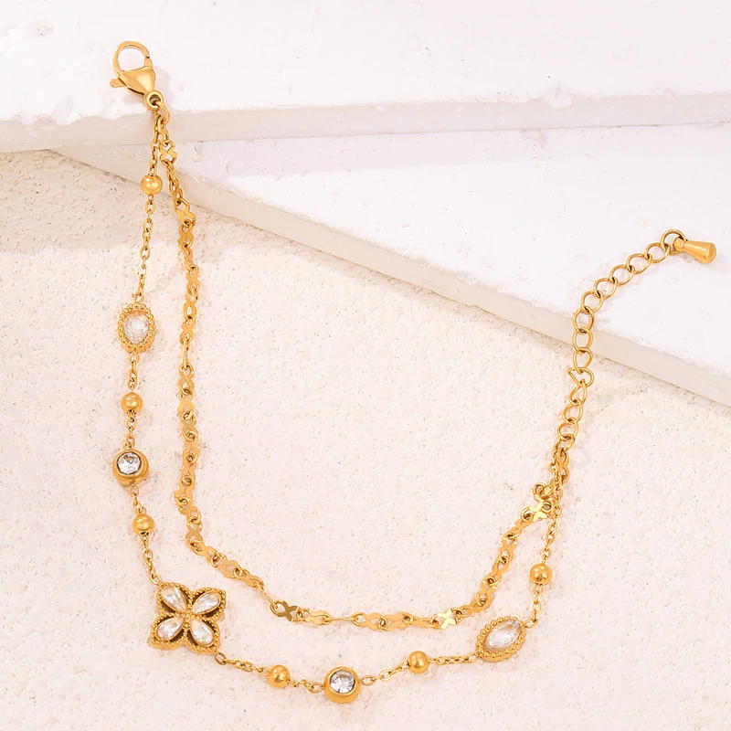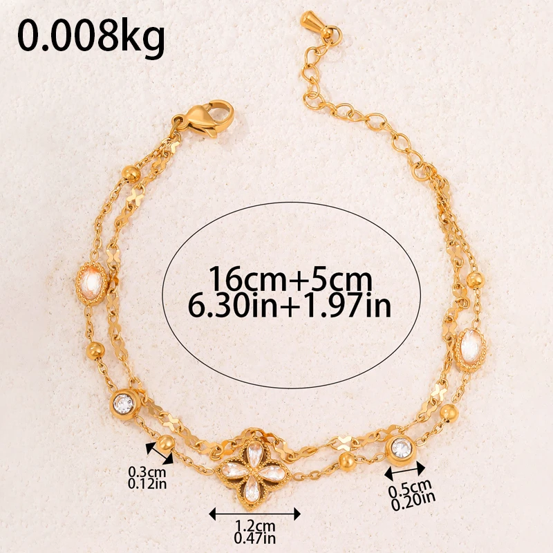 Chain Type: Link Chain, Item name: Stainless steel bracelet, Types of: Double-layer charm bracelets, Apply to: Fashion wrist chain, Design: Four leaf clover, Occasion: Rust-proof jewelry gifts, Brand Name: CDD, Model Number: Stainless steel bracelet, Style: TRENDY, Clasp Type: Lobster-claw-clasps, Material: cubic zirconia, High-concerned Chemical: None, Metals Type: STAINLESS STEEL, Origin: Mainland China, Gender: Women, Item Type: BRACELETS, Setting Type: Prong Setting, Compatibility: All Compatible, Function: fitness tracker, Function: sleep tracker, Function: Mood Tracker, Bracelets Type: Chain & Link Bracelets, CN: Zhejiang, Fine or Fashion: fashion, Shape/Pattern: plant, Choice: yes, Semi_Choice: yes.