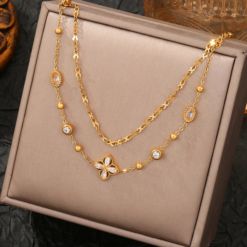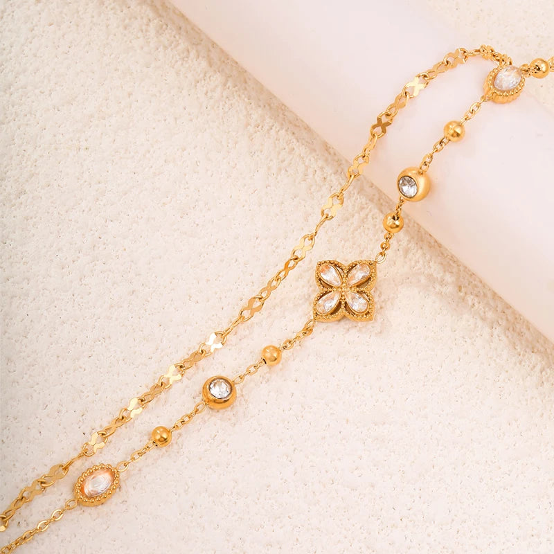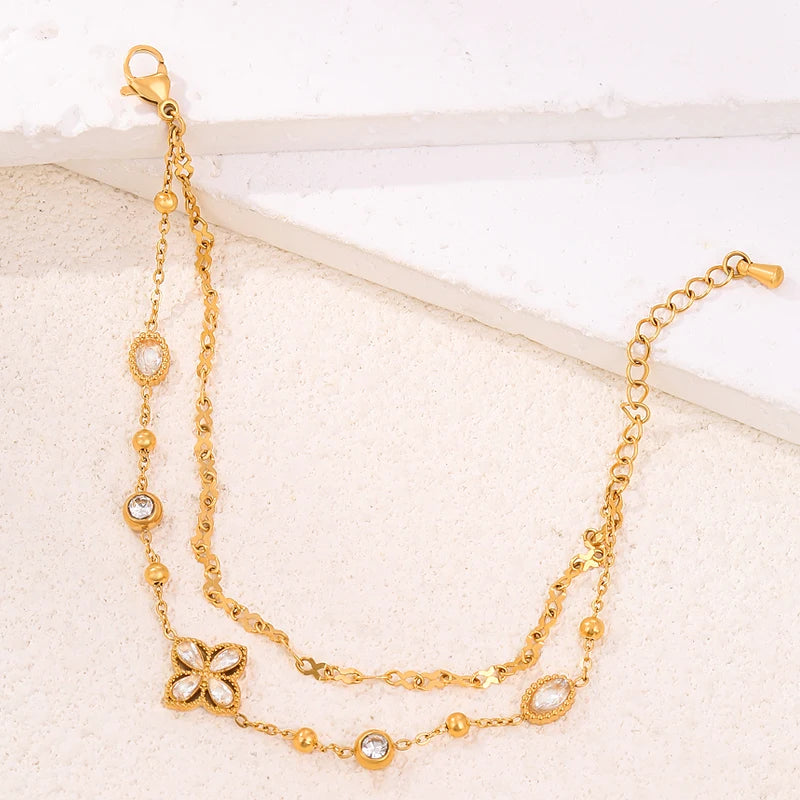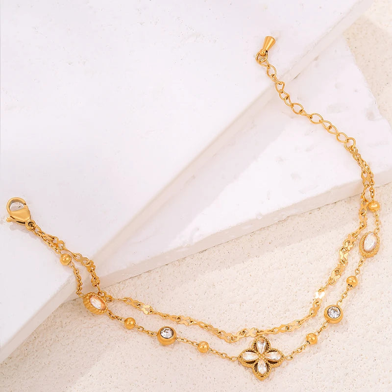 "High-End Stainless Steel 2-Layer Clover Charm Bracelet for Women"