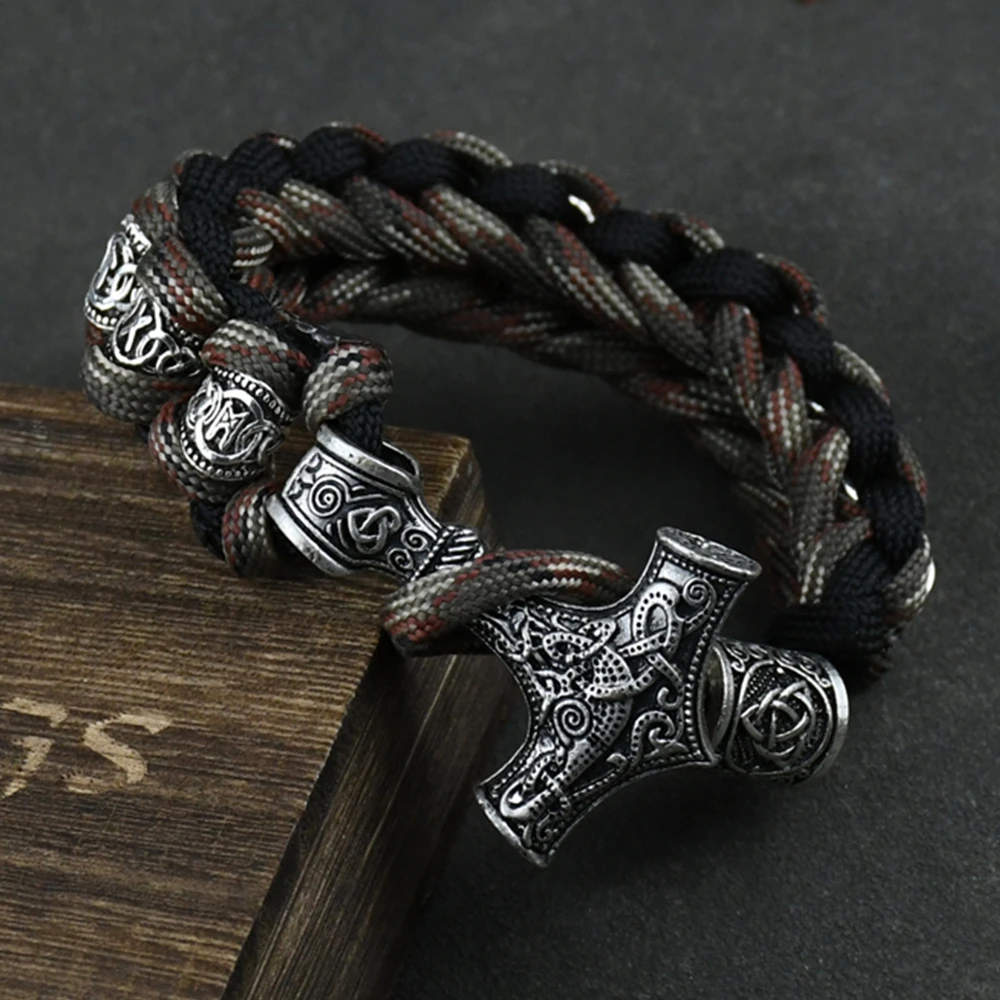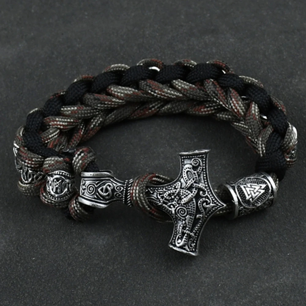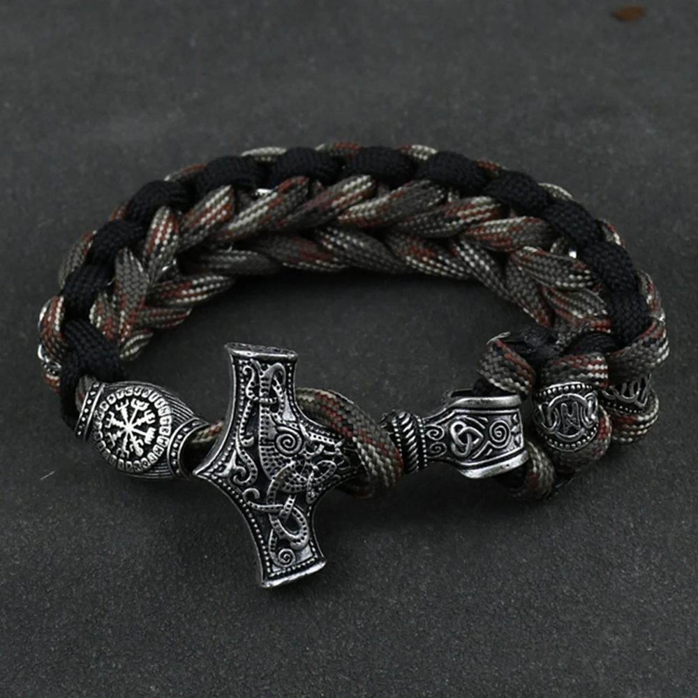 Item Name:Thor Hammer Norse Runes Bracelet Vikingo Runes Beads Vegvisir Compass Amulet Viking Bracelet Slavic Accessorier