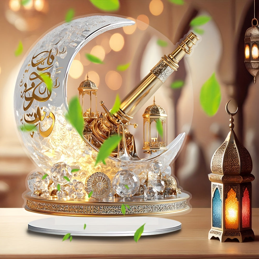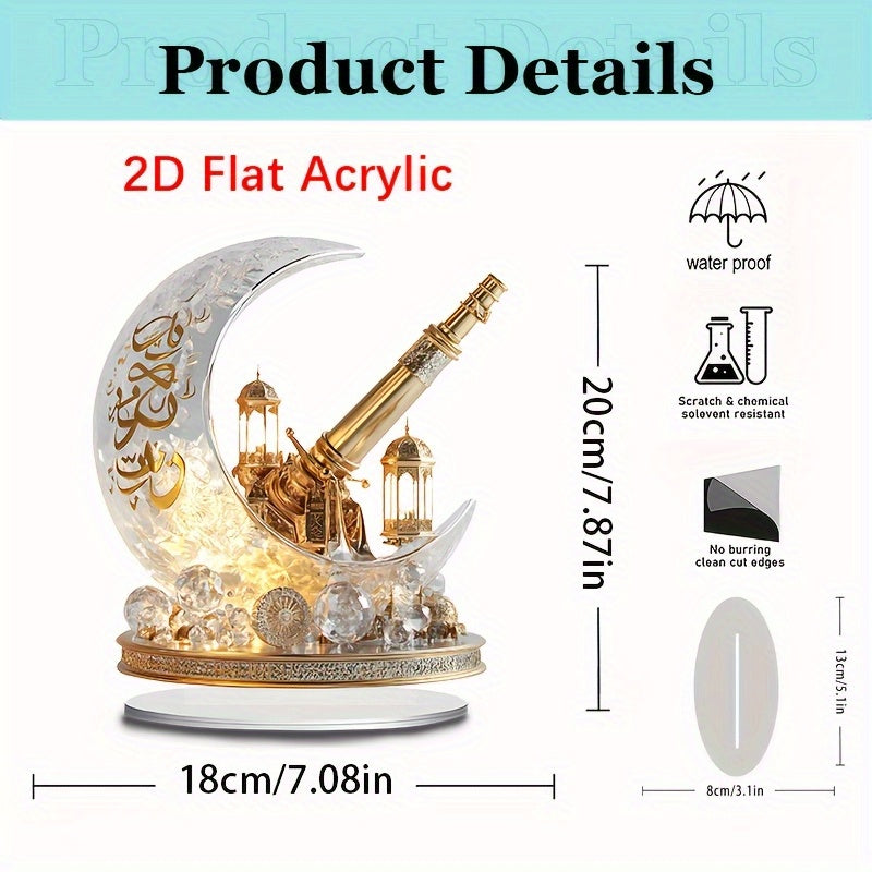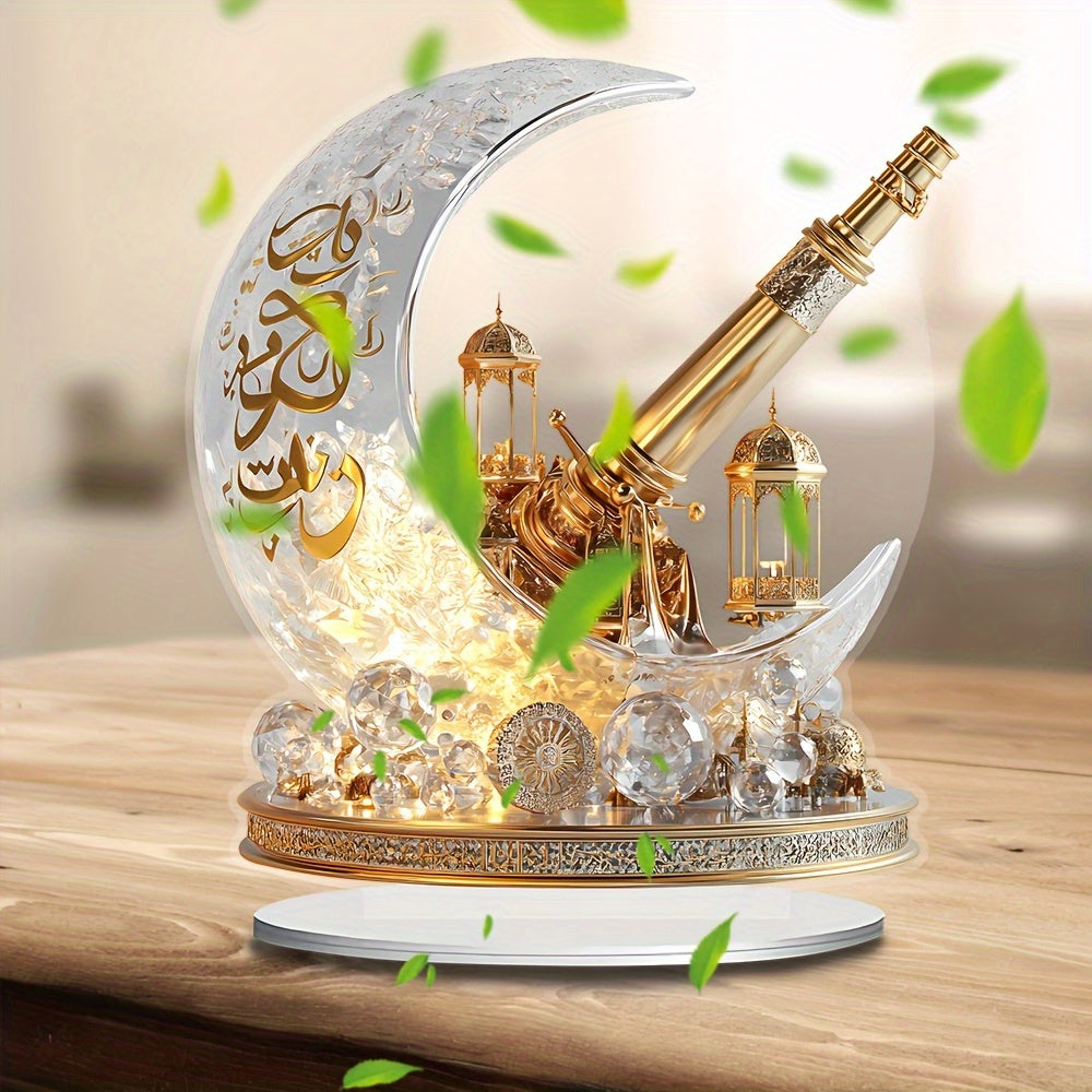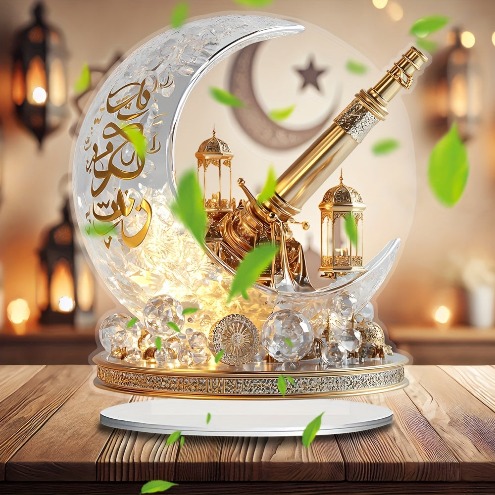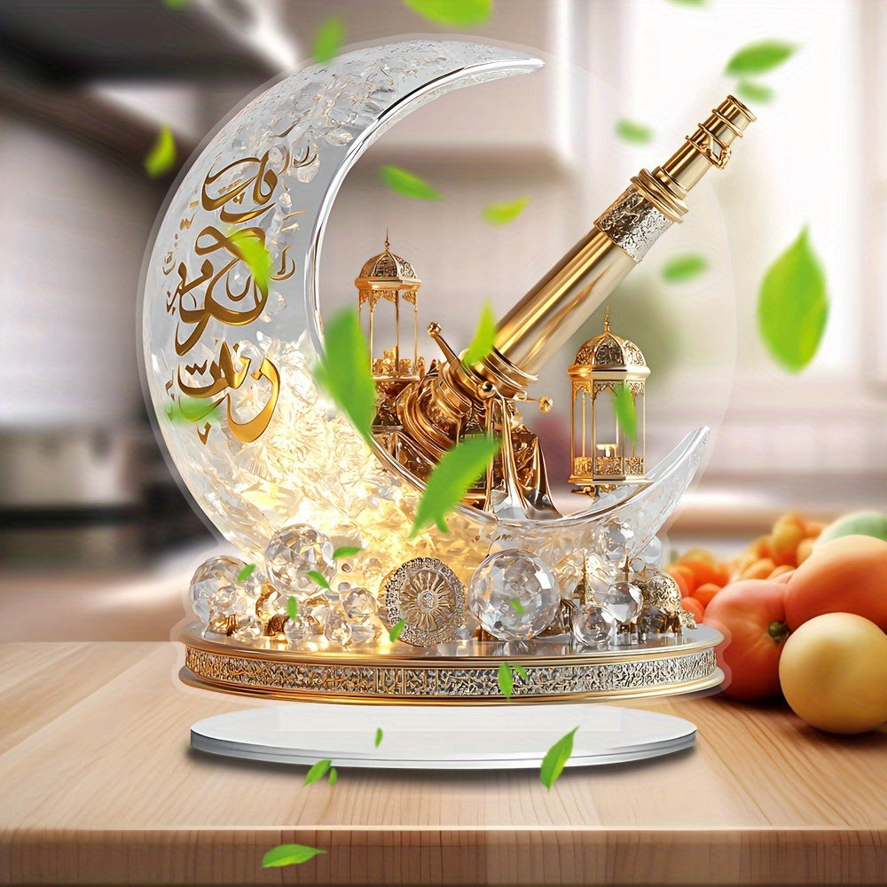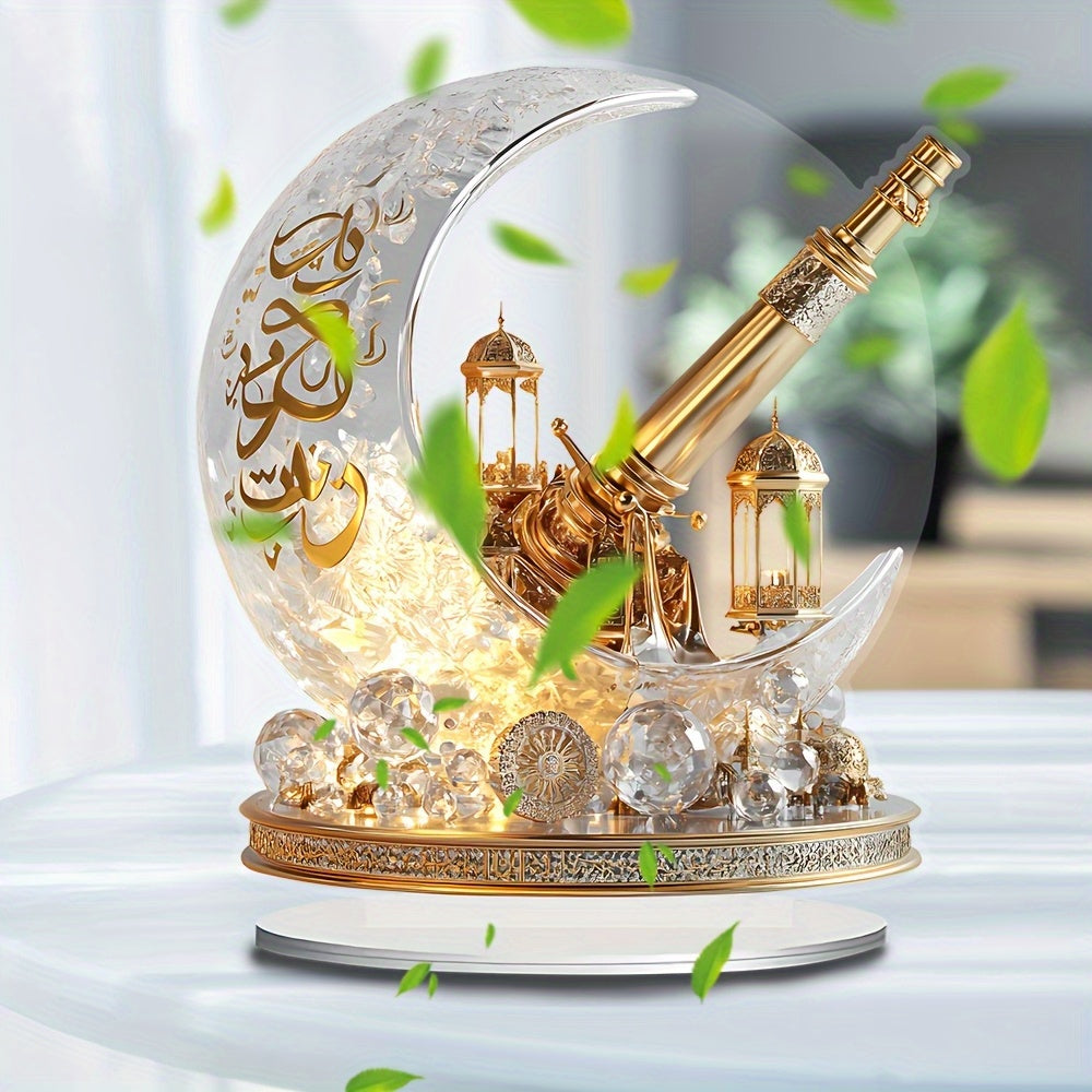 2D Flat, 1pc Bohemian Style Crystal Crescent Cannon Decorative Board - 17.98cm X 19.99cm Desktop Decor, Religious Theme, Suitable for Muslim Ramadan, Eid al-Fitr, Muharram, Valentine's Day, Eid al-Urahdha - No Power Required,