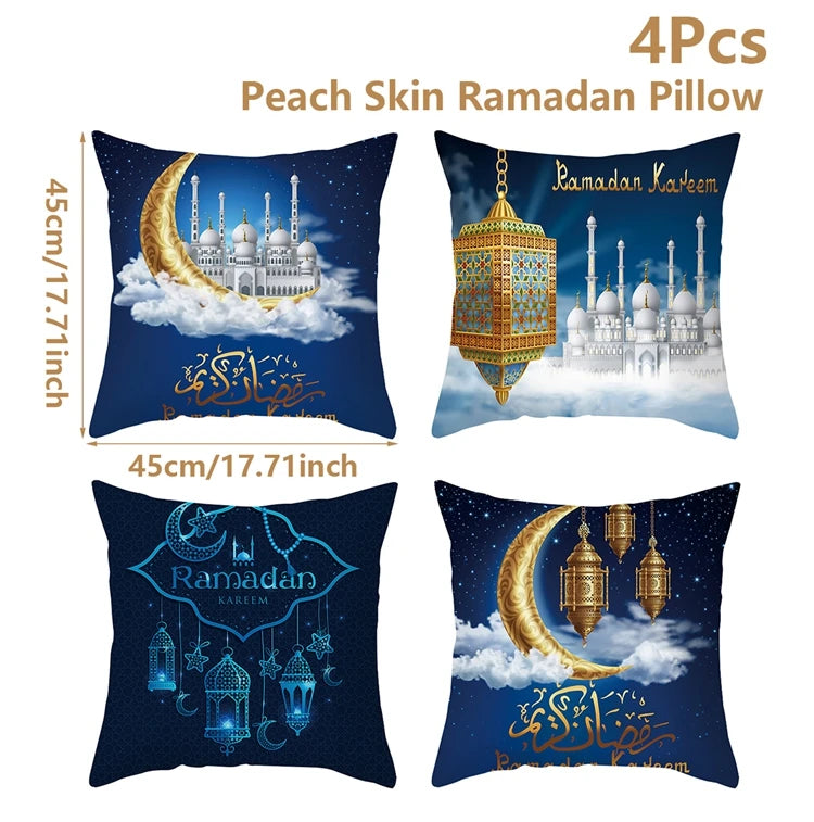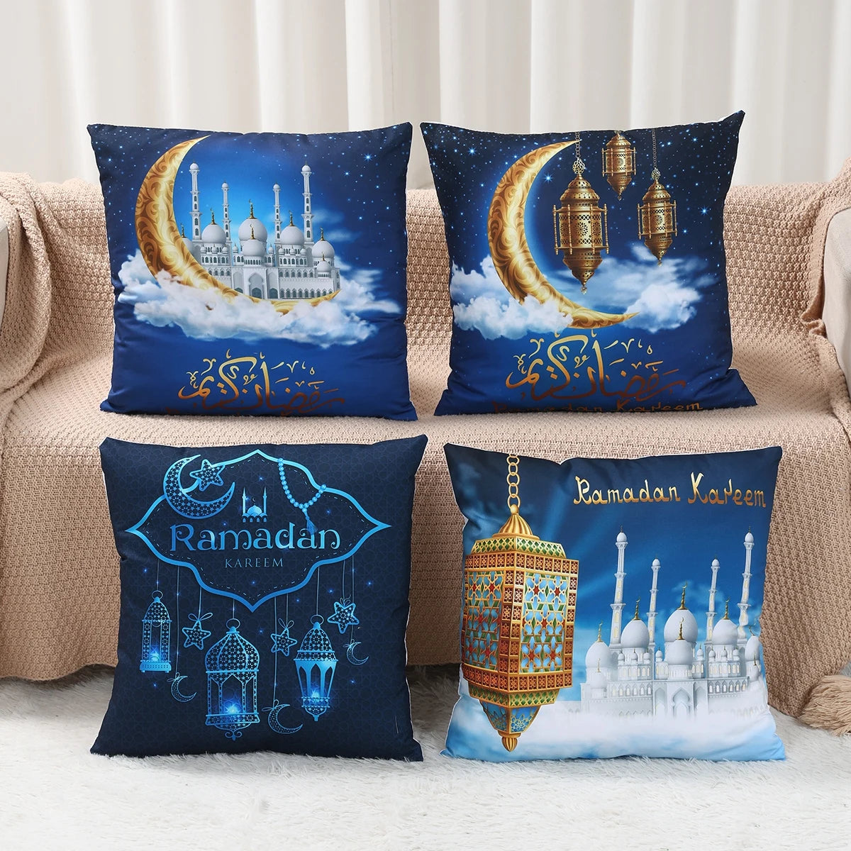 Eid Mubarak Pillowcase Cushion Cover Ramadan Kareem Decor For Home 2025 Sofa Cushion Cover Islamic Mosque Muslim Party Gifts