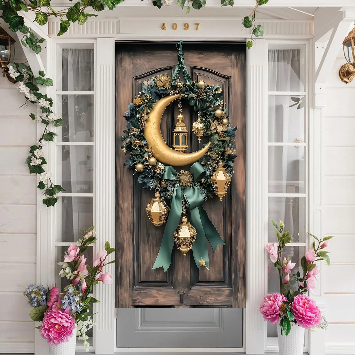 Eid Party Theme Background Ramadan Mubarak Decorations for Home Islamic Muslim Kareem Eid Al Adha Door Cover Prop Gift Poster