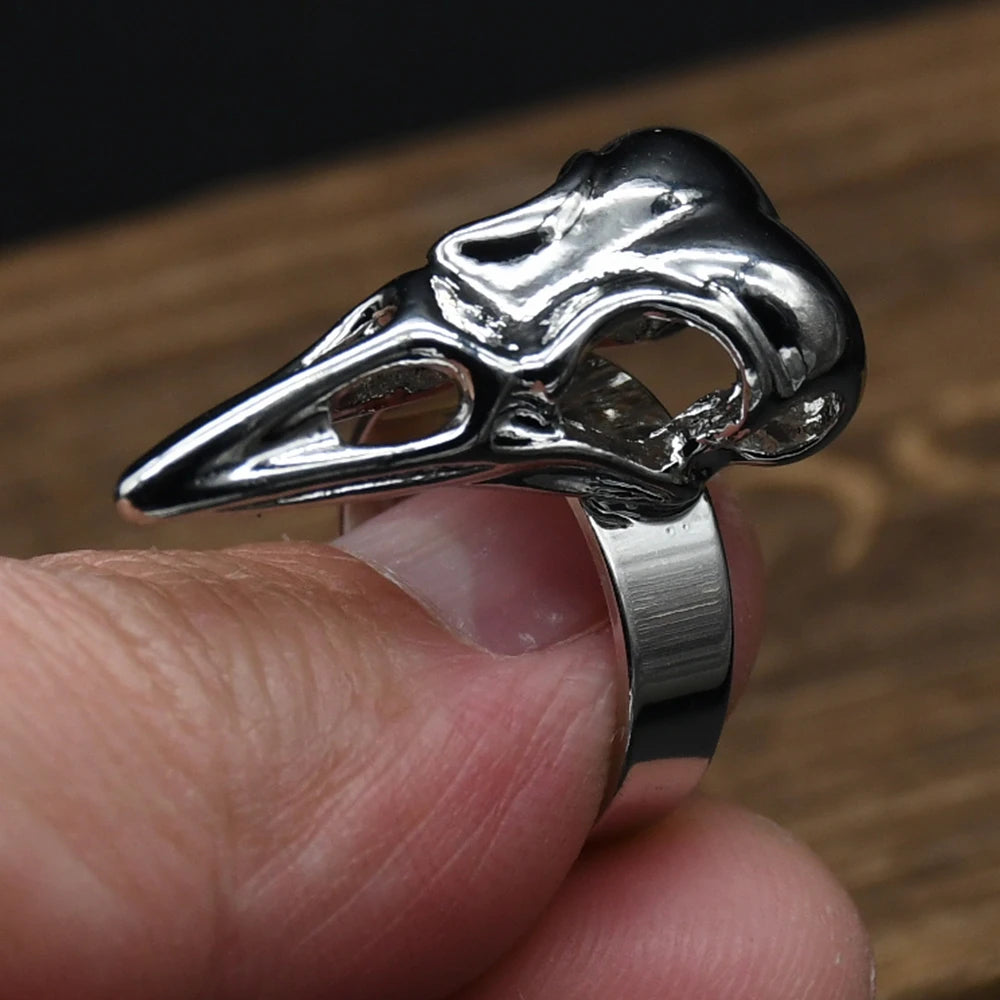 Viking Odin Raven Skull Ring – Gothic Nordic design with crow/eagle skull for Men.