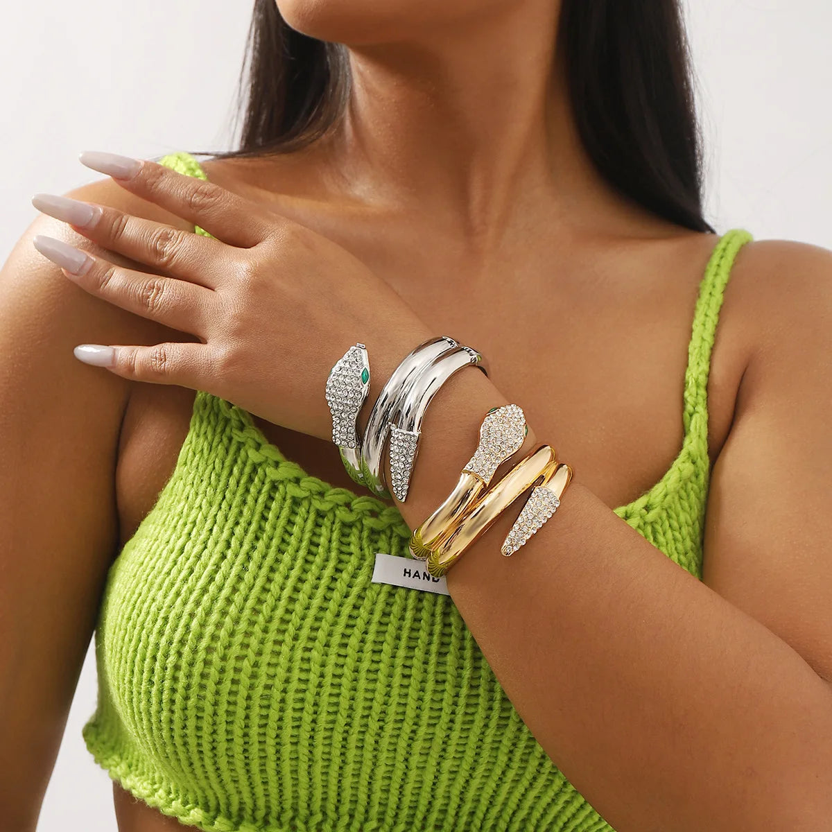 "European-American Diamond Spirit Snake Multi-Layer Hip-Hop Open Bracelet"