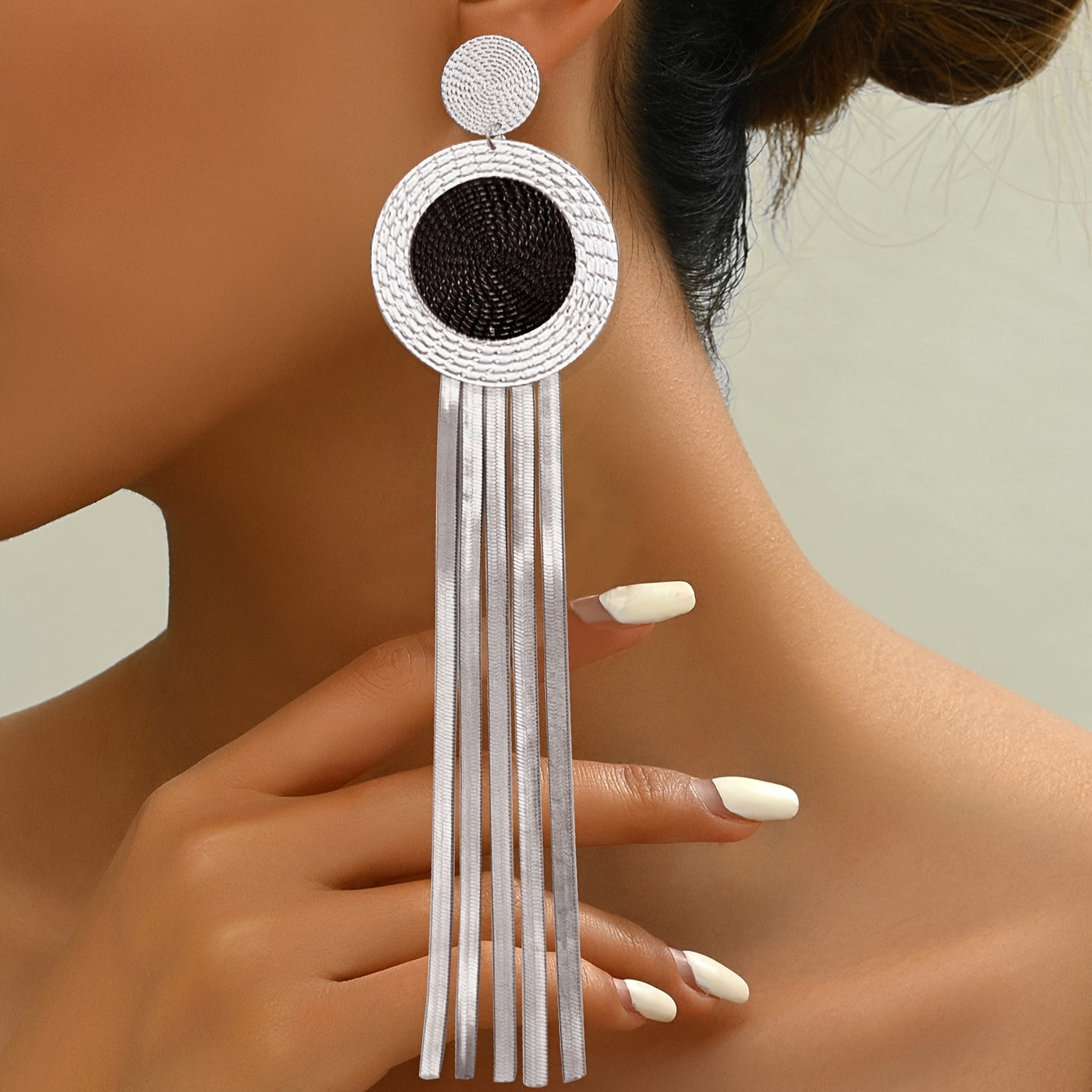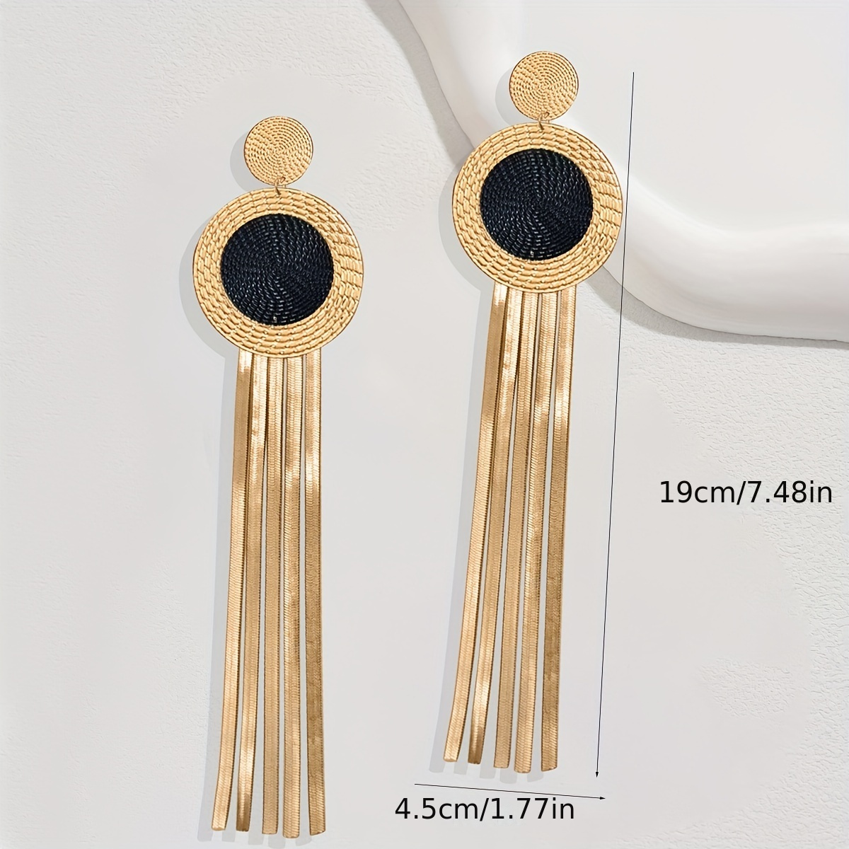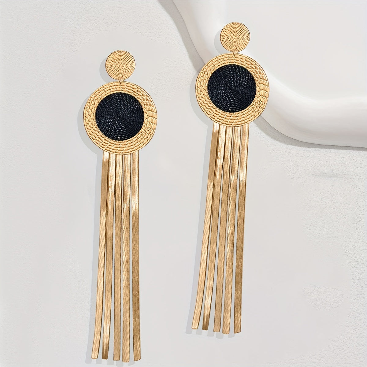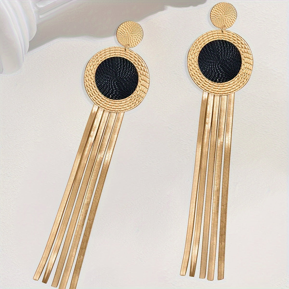 "1 Pair Chic Vintage-Inspired Geometric Tassel Earrings – Golden & Navy Blue, Stainless Steel Posts, All-Year Statement Piece."