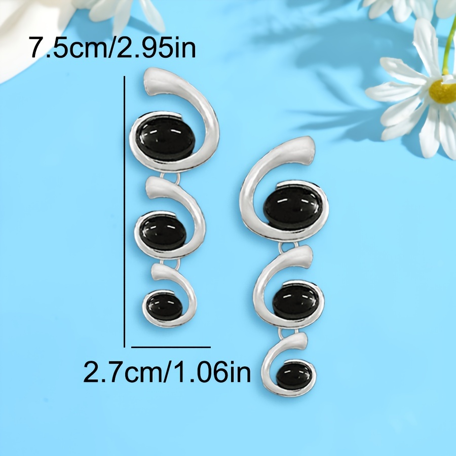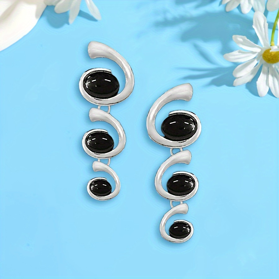 "1 Pair Fashionable 3-Spiral Earrings with Black Acrylic – Hanging Style, Arranged from Large to Small."