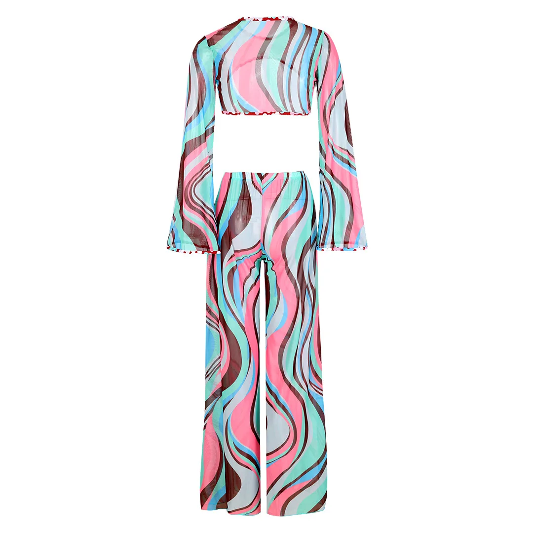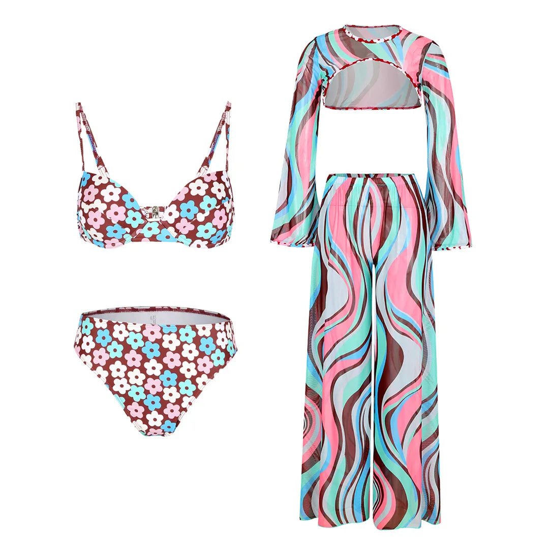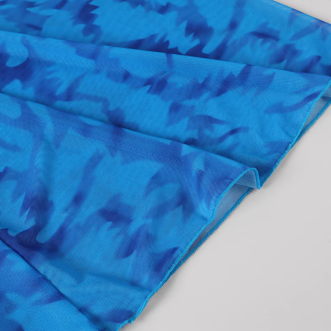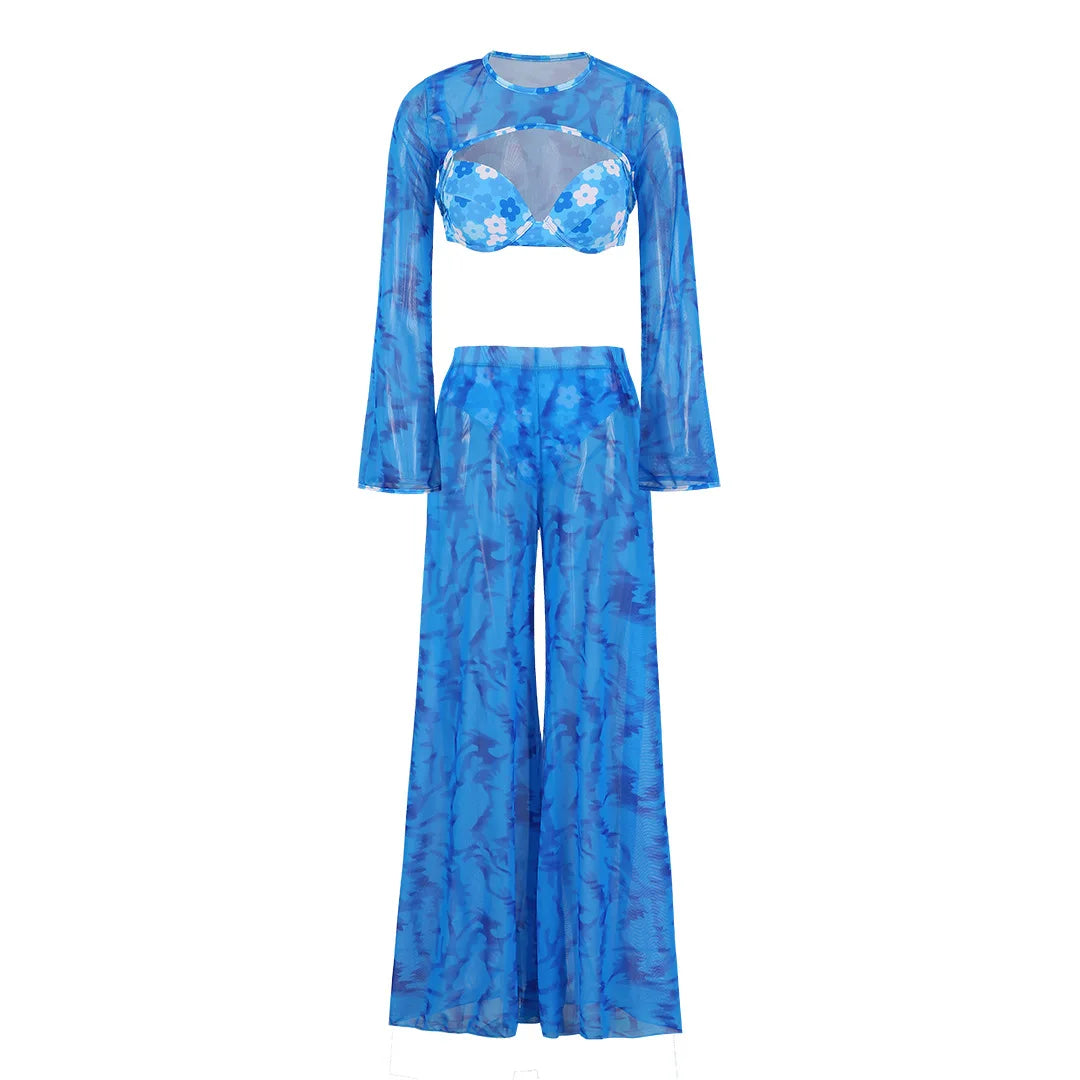 "2025 Blue Sexy Bikini Set with Long Sleeves, Mesh Swimwear for Women"