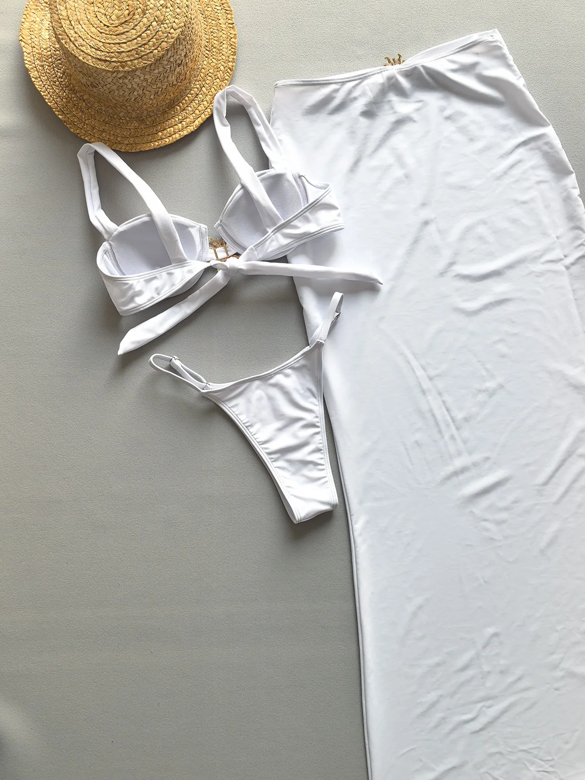 "2025 Three-Piece Bikini Set, Sexy Push-Up Swimsuit with Long Skirt for Women"