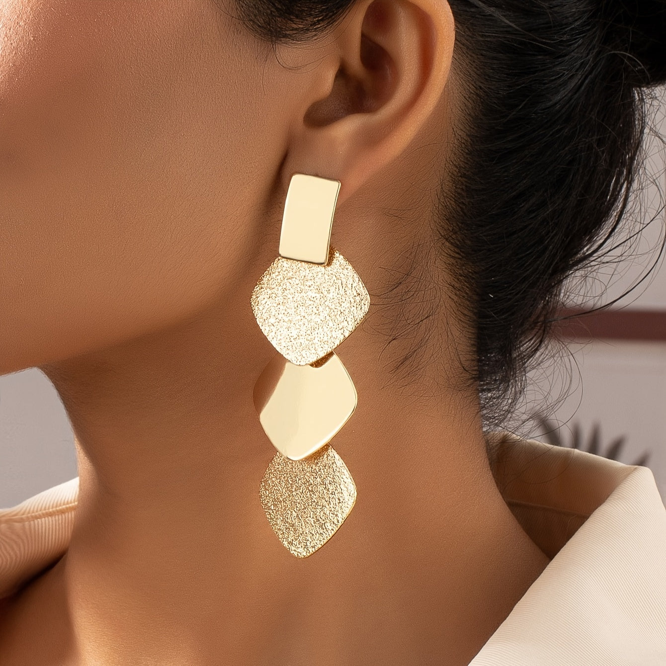 A Pair Of Exaggerated Golden Diamond-shaped Earrings With A Strong Sense Of Fashion And Three-dimensionality.