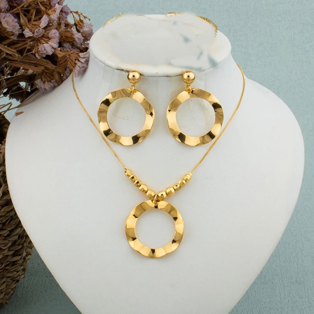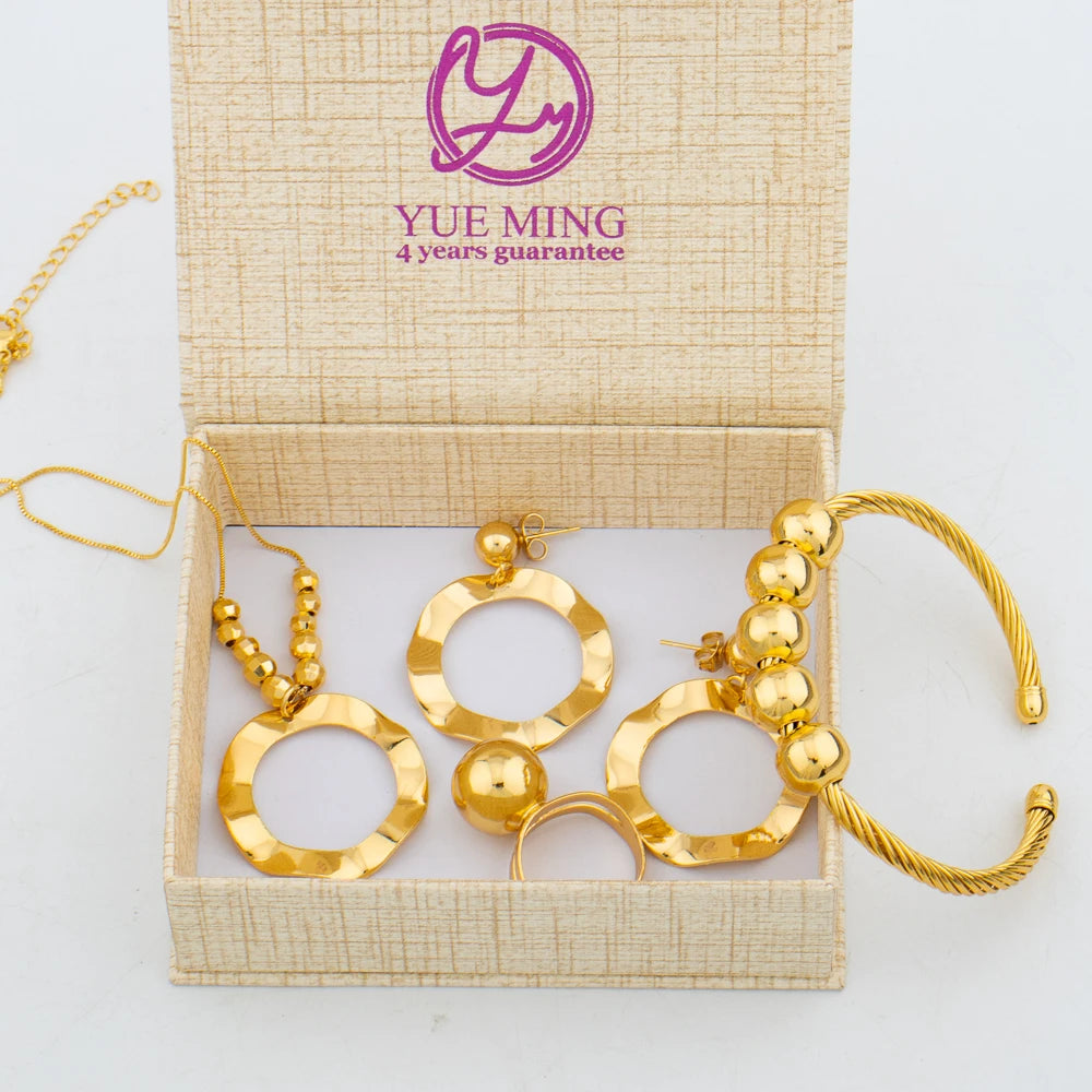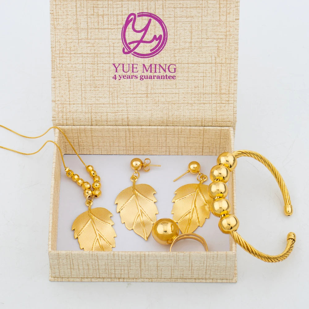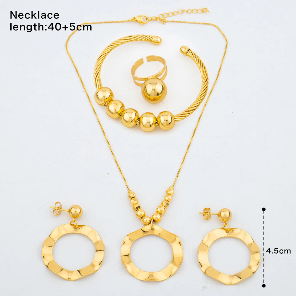 "Arabic Dubai Women's Jewelry Set – Bead Earrings, Necklace, Gold Bracelet, Ring, Wedding Gift."