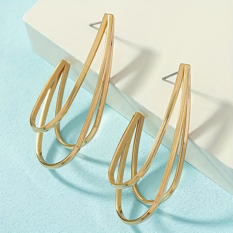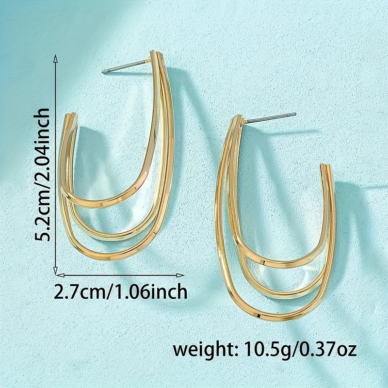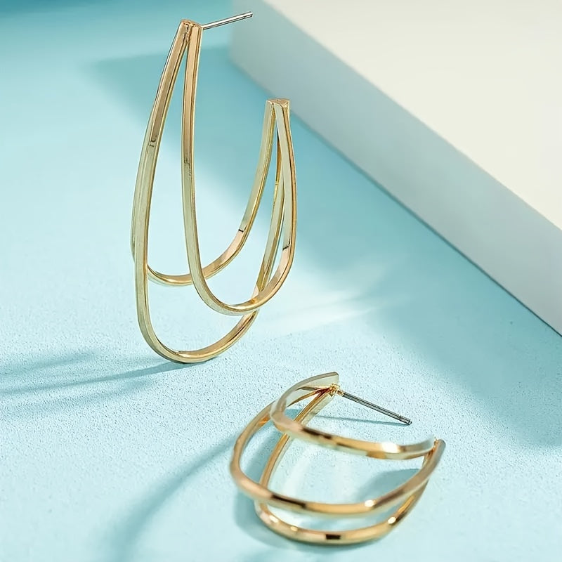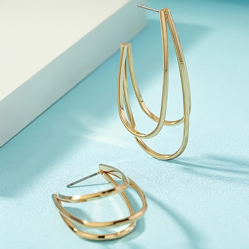 Elegant Simple Triple Line Hoop Earrings for Women, 14K Gold-Plated Iron, Daily Wear Accessory