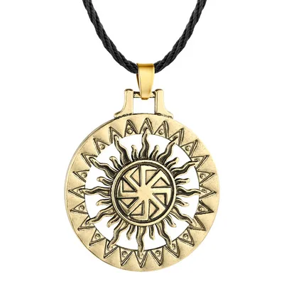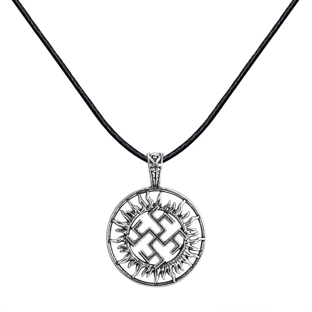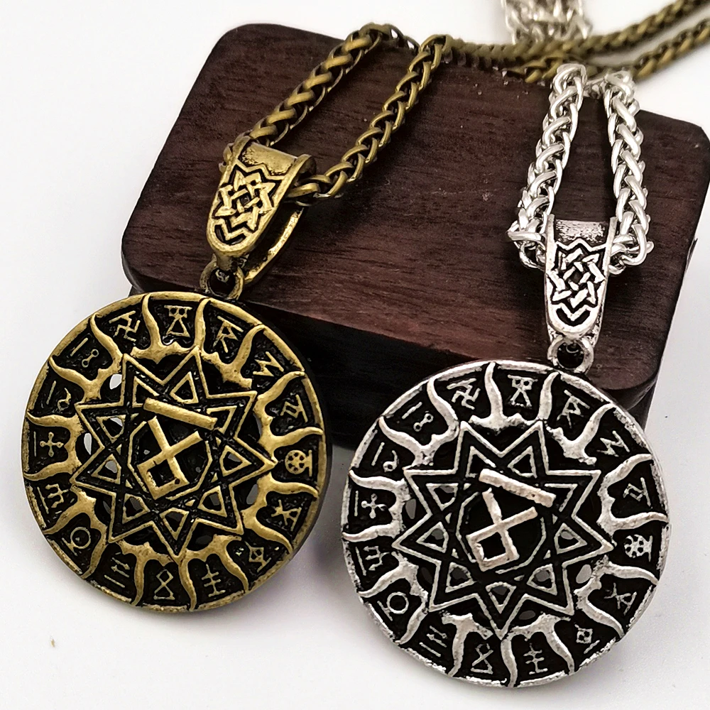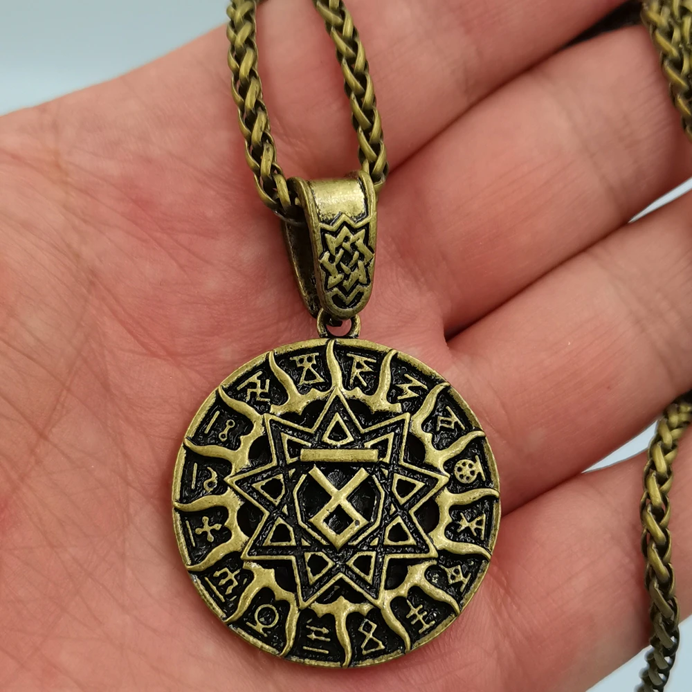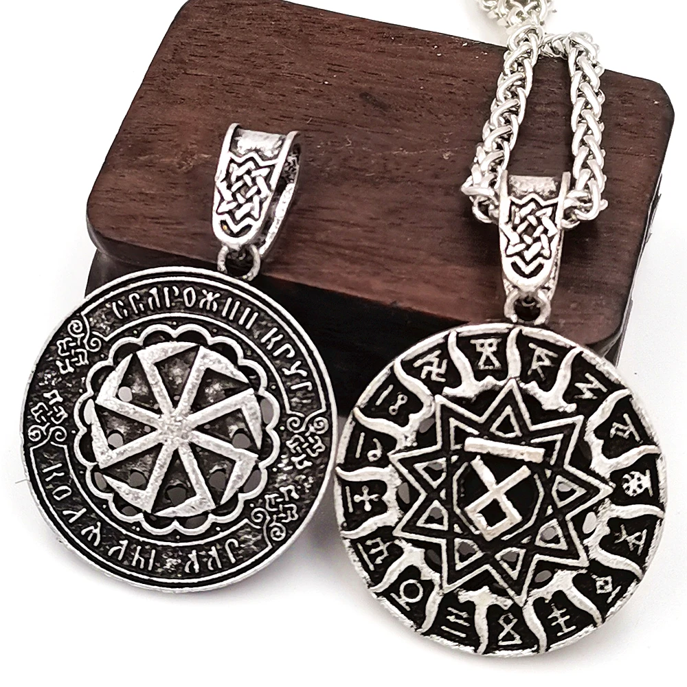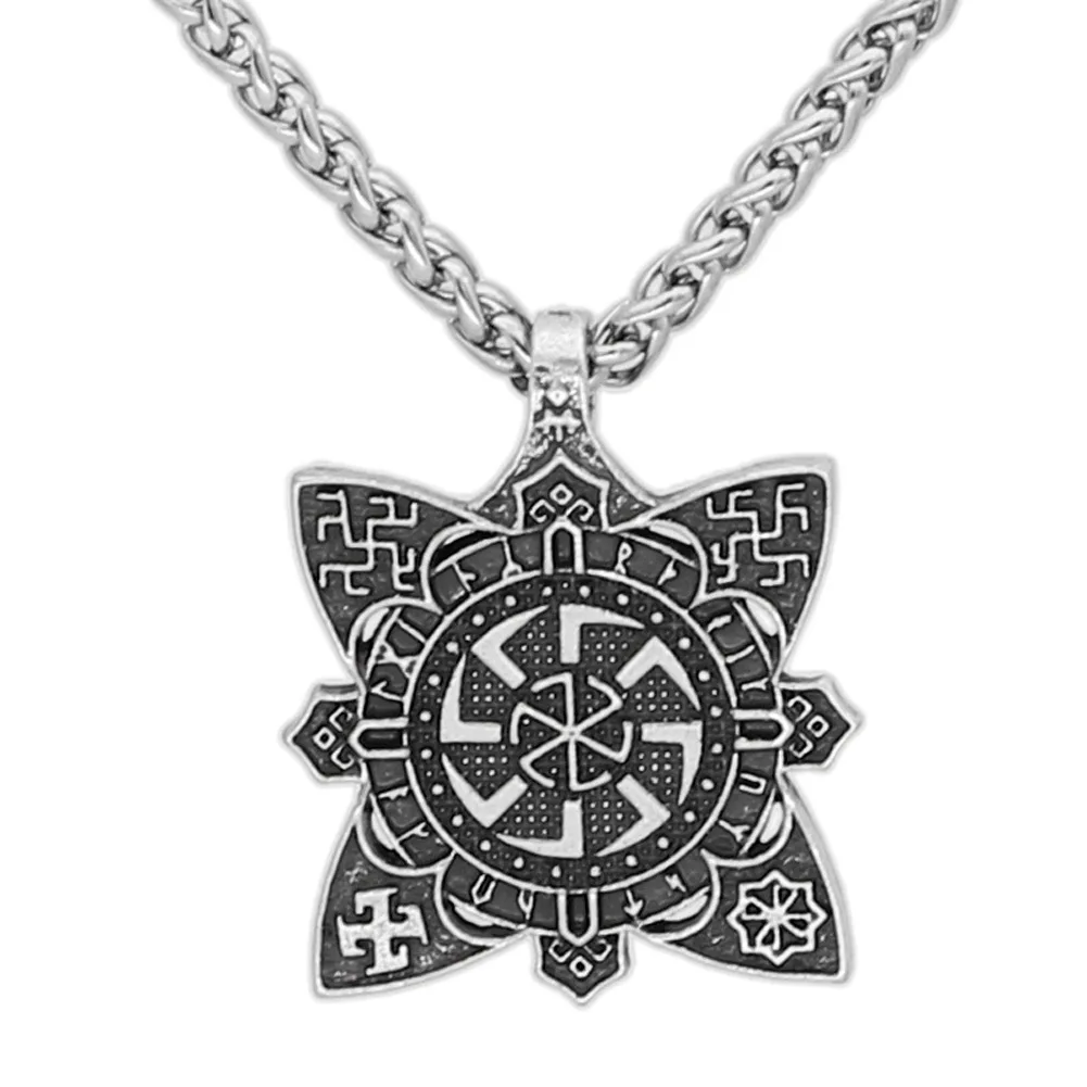 Slavic Kolovrat Pendant – Pagan amulet with Viking runes and Star of Russia design. Vintage talisman necklace.