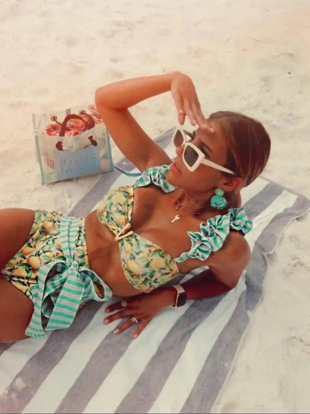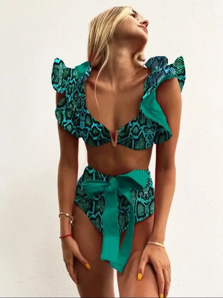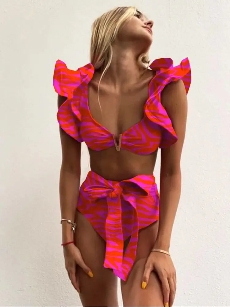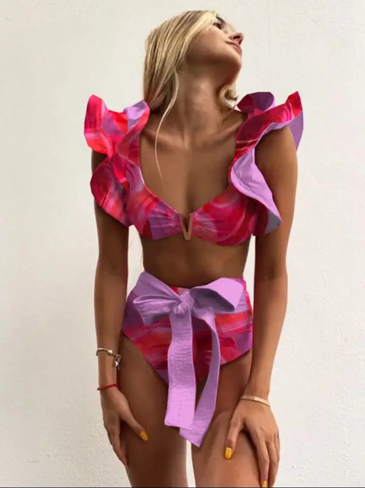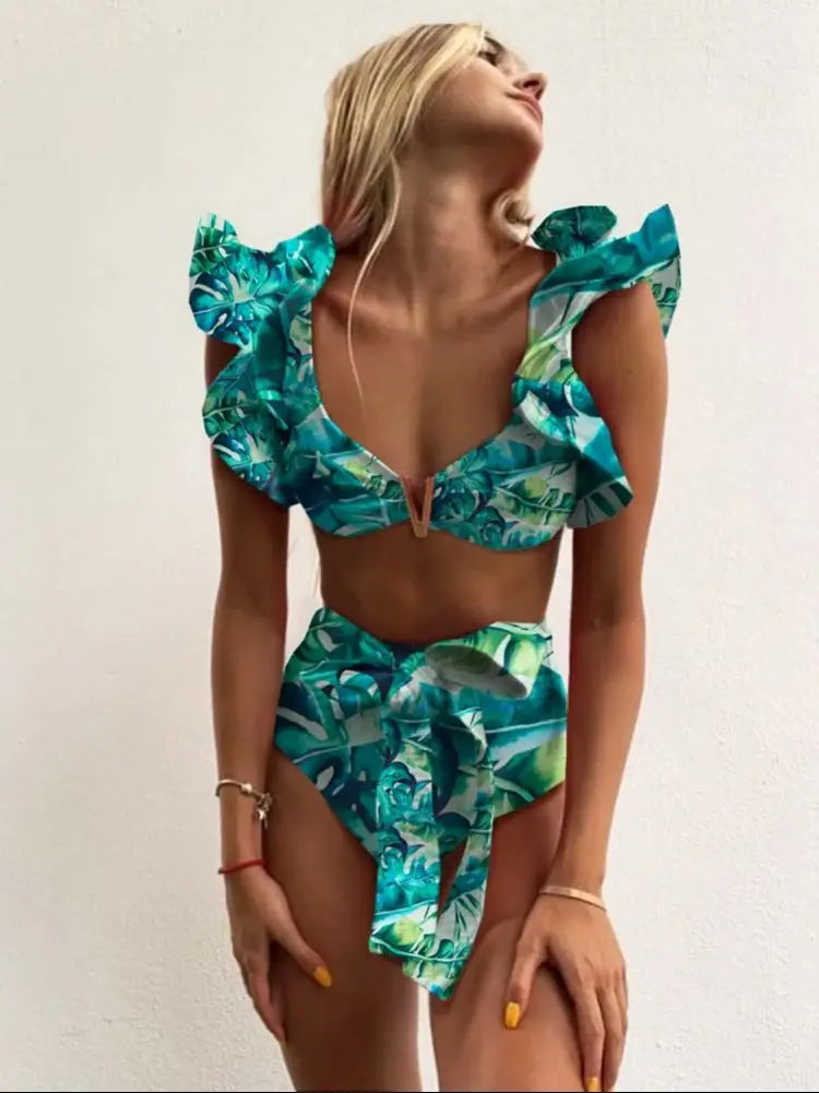 Two-Piece Floral Push-Up Padded Bra Ruffle Bandage Bikini Set 2025
