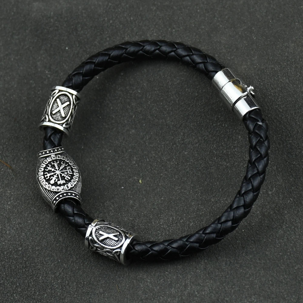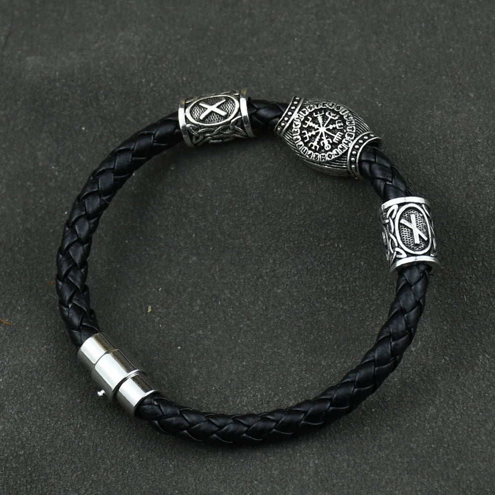 "Viking-inspired jewelry with runes, beads, and charms for men and women, including bracelets and bangles.