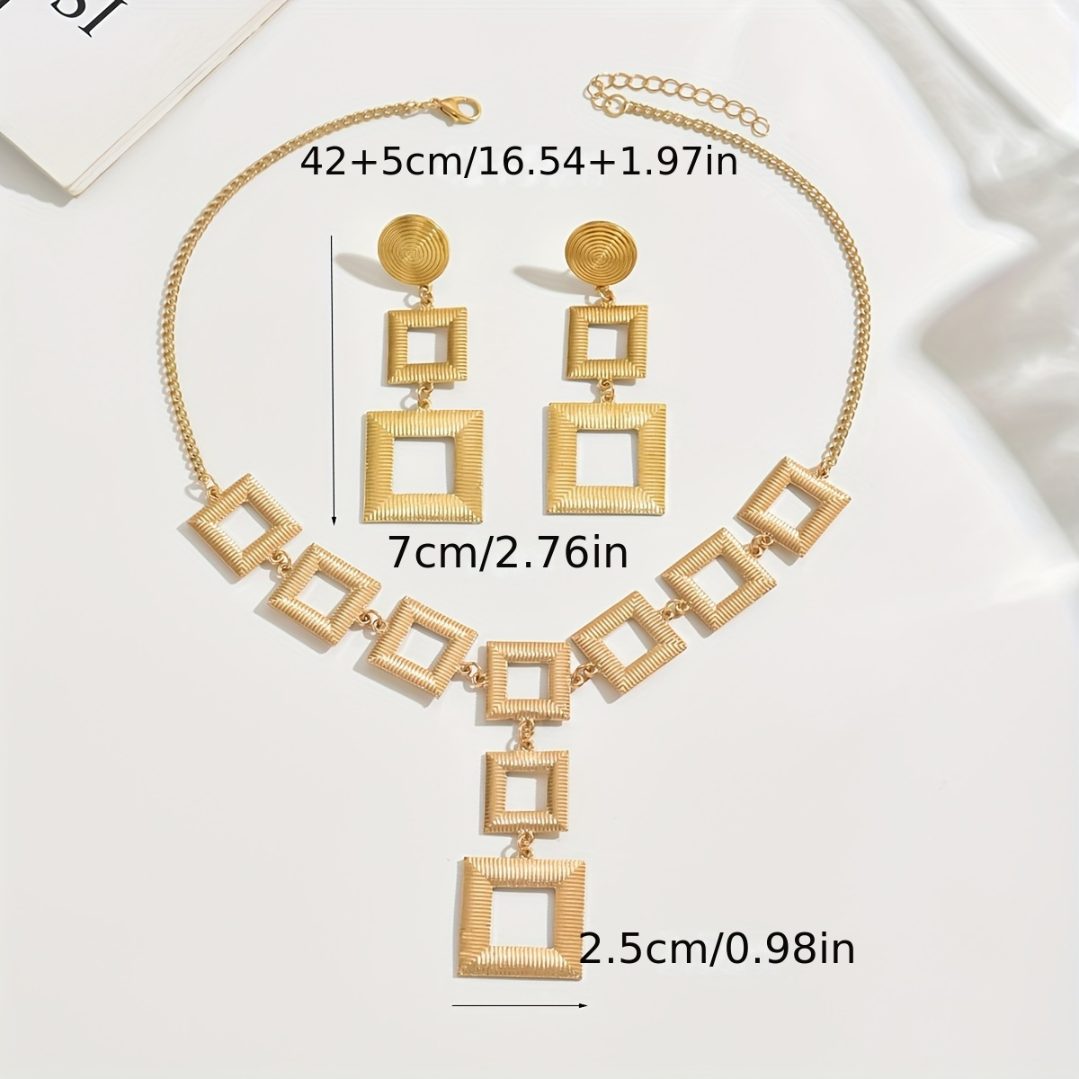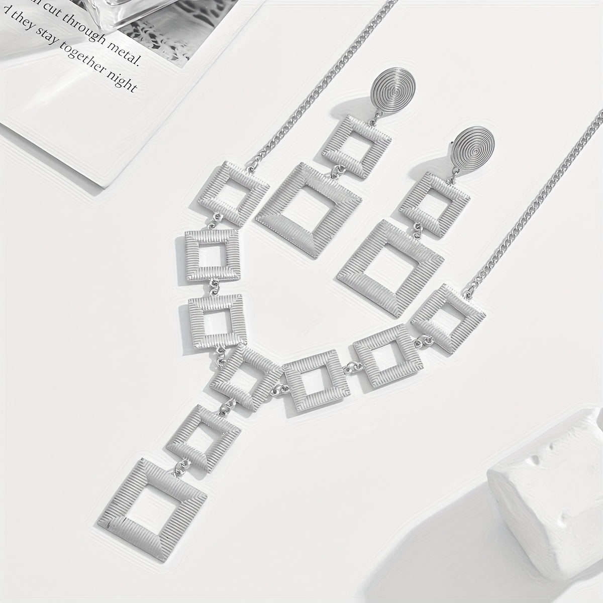 Women's Jewelry Set – Hollow Square Geometric Stud Earrings & Necklace, Zinc Alloy, Everyday Fashion Accessory."