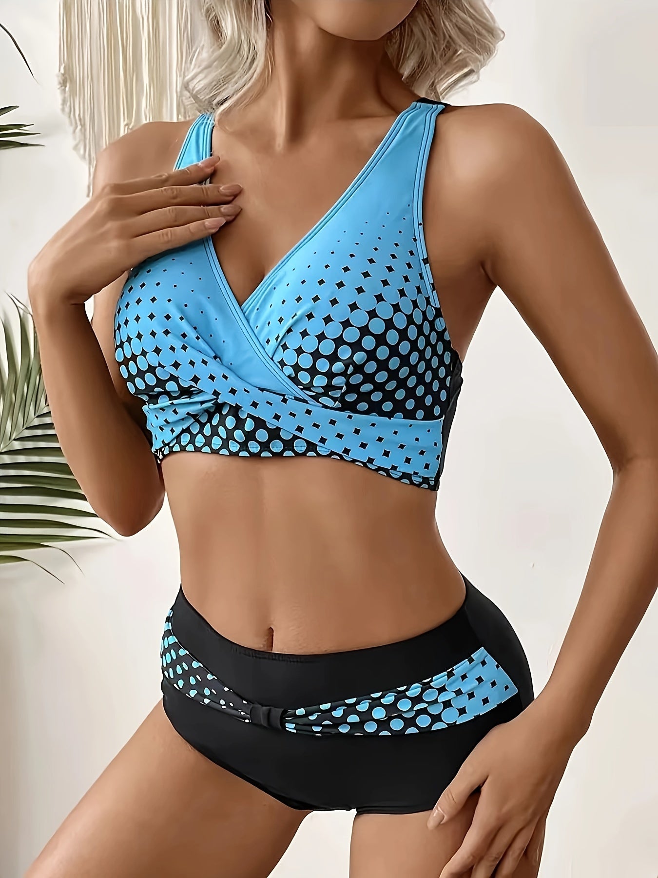 "Women's Sexy High-Stretch Digital Print Bikini Set – Two-Piece Swimsuit Beachwear."